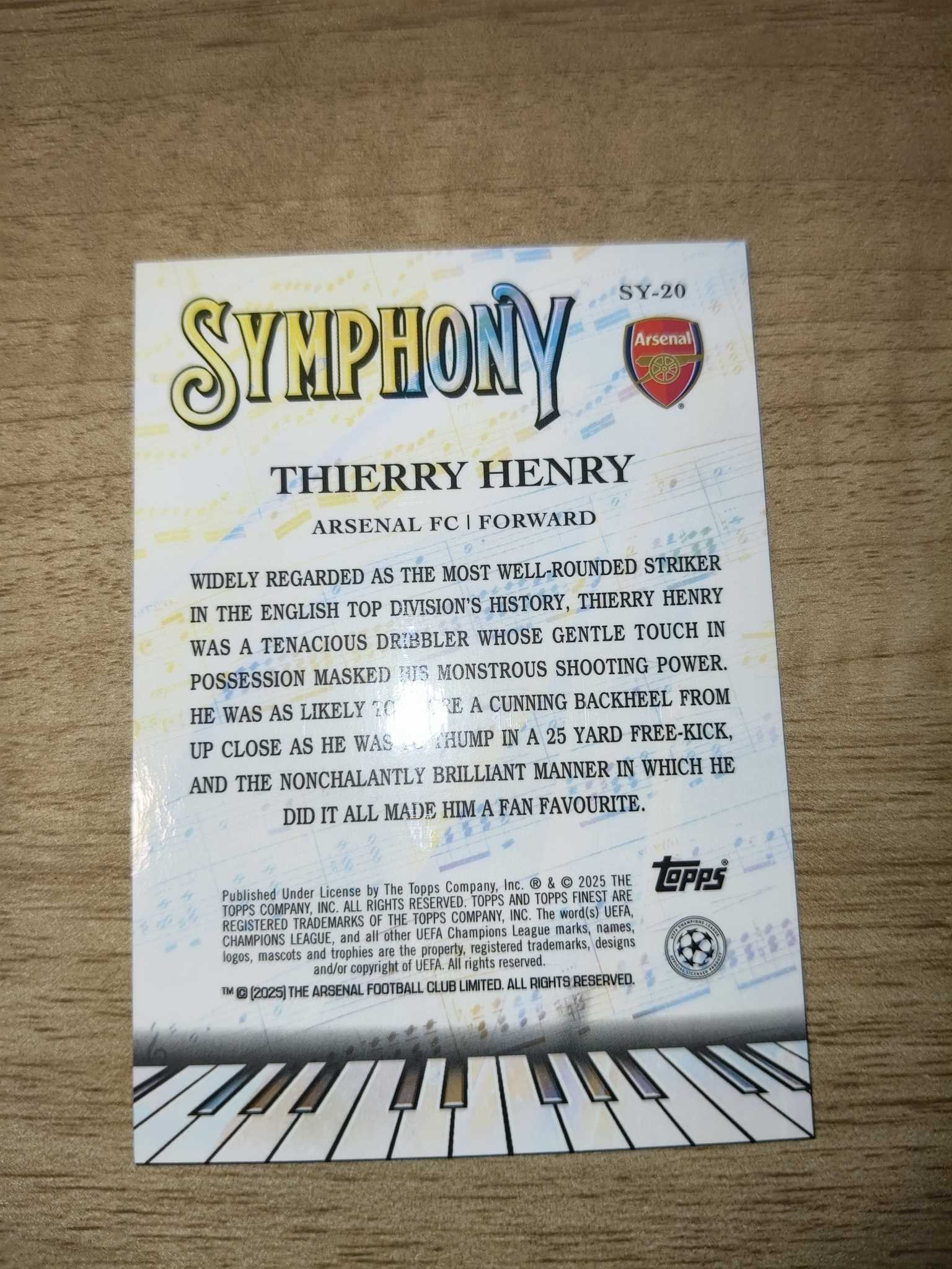 2025 Topps Finest Thierry Henry 欧冠 阿森纳 传奇 海布里之王 亨利 特卡196/299编