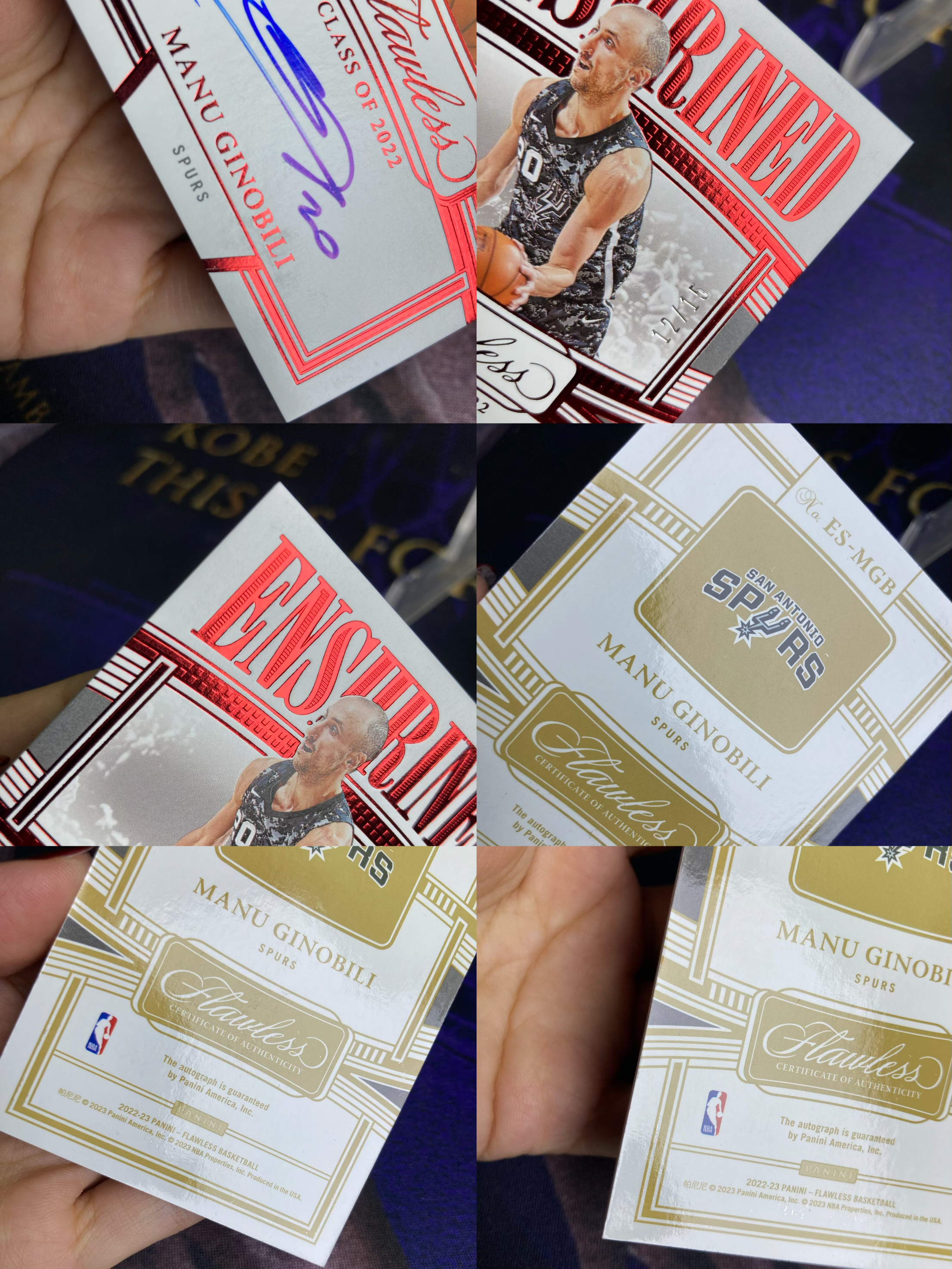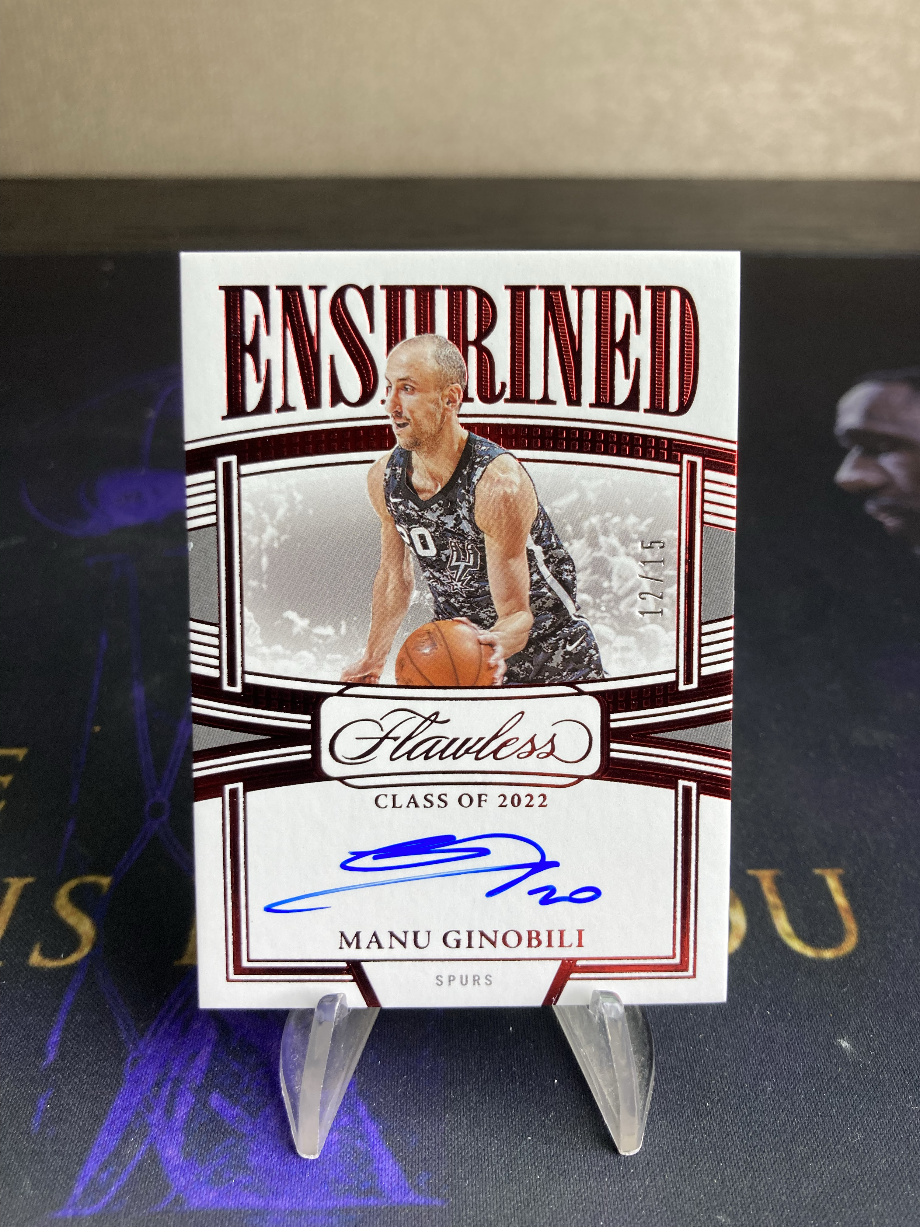 2022-23 Panini Flawless Manu Ginobili 【星卡优转】手提系列 马刺 妖刀 马努 吉诺比利 12/15编 签字 卡签 红平行 专收必备 微瑕如图 森鱼