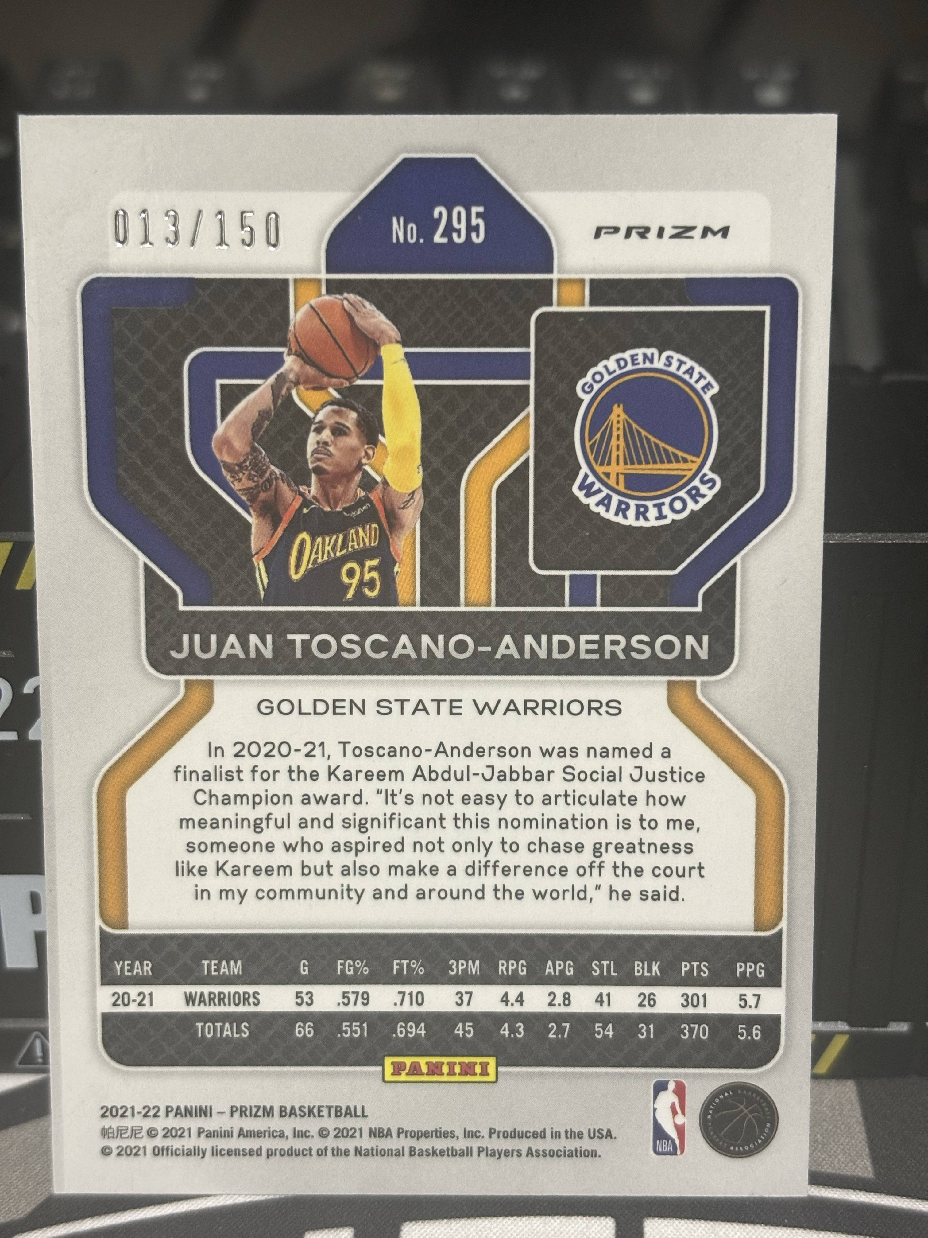 2021-22 Panini Prizm Juan Toscano-Anderson RC 勇士队 胡安 托斯卡诺 安德森 新秀 150编蓝泡泡折 斯蒂芬 库里前队友 凯德 康宁汉姆同届 不保卡品