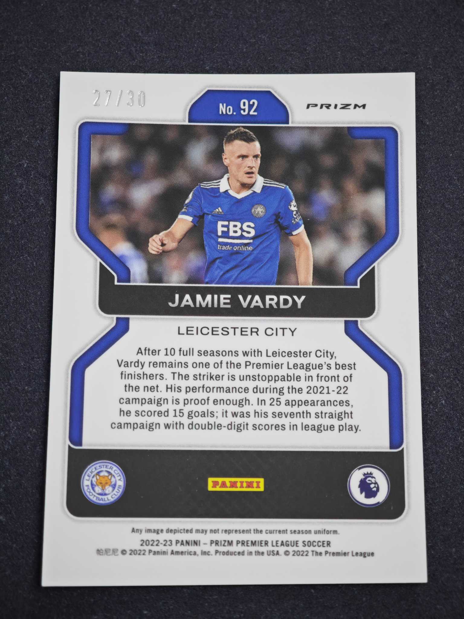 2022-23 Panini Prizm Jamie Vardy 【小灰机】pz 瓦尔迪 27/30编 红圈圈折 折射 低编 莱斯特城 猝死独占 卡品如图 实卡精美 收藏必备 安然