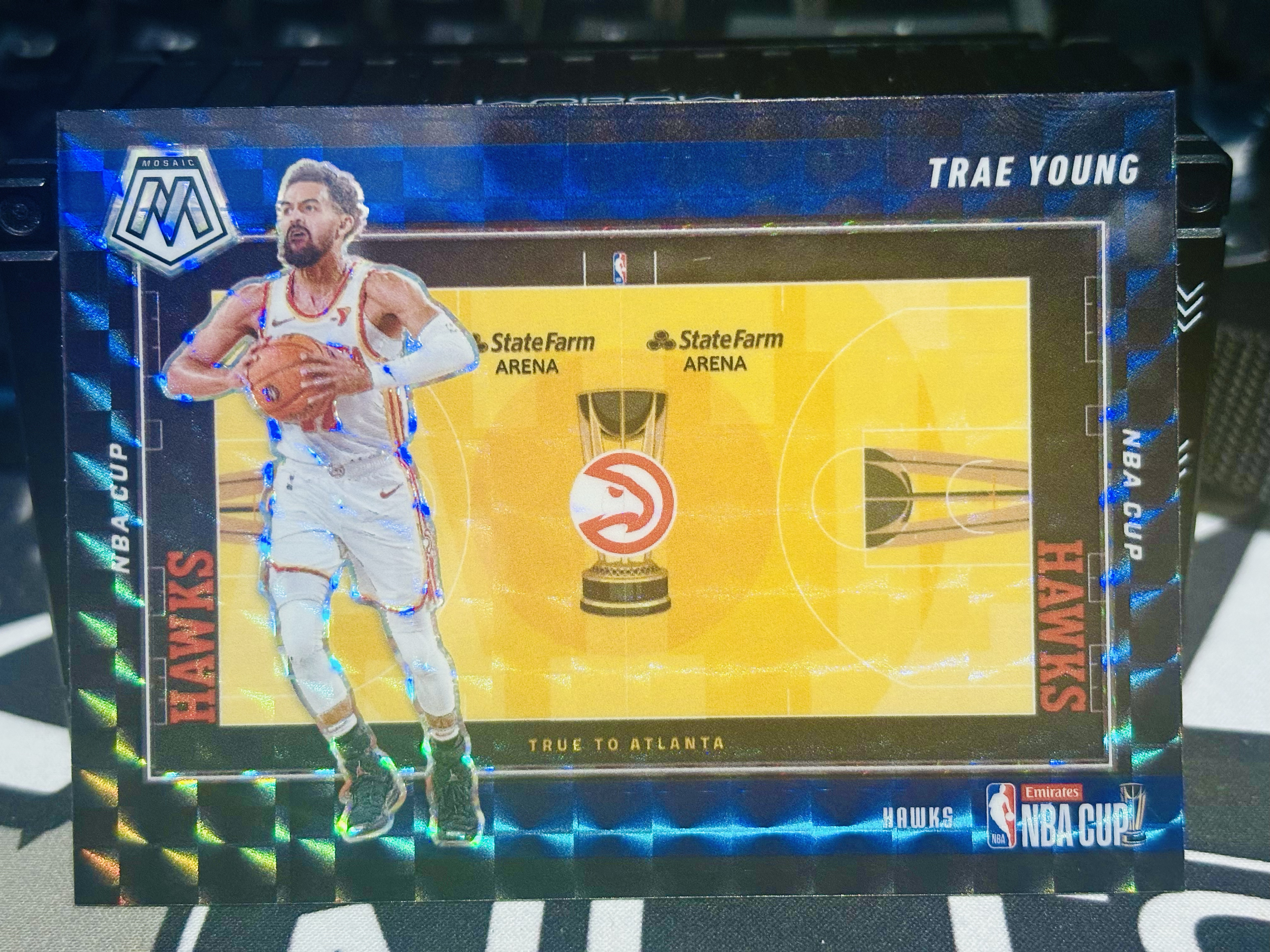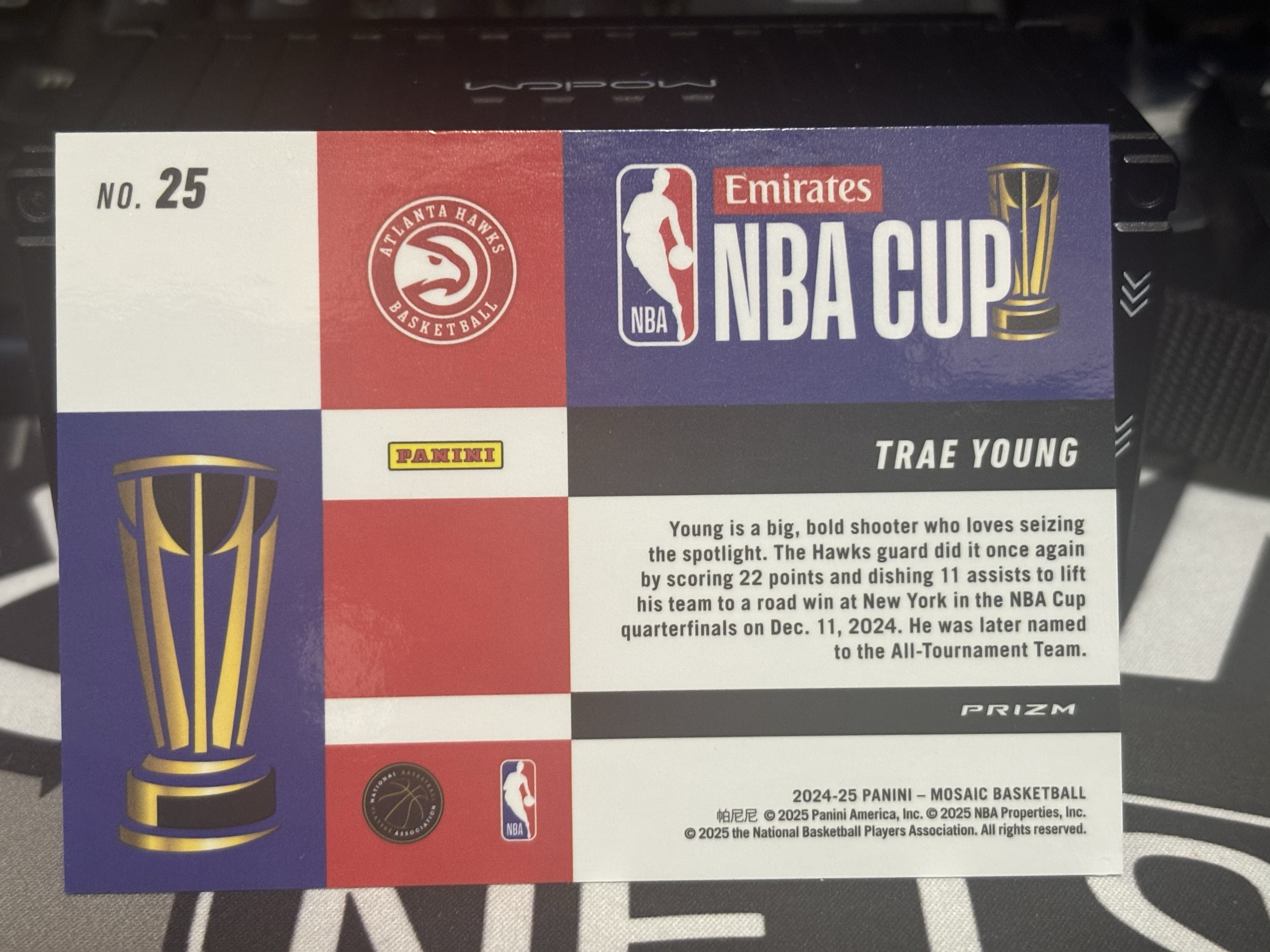 2024-25 Panini Mosaic Trae Young 马赛克 特雷 杨 黑折 年度锦标赛奖杯特卡 地板 黑马赛克折 纽约市长 里萨谢队友 不保卡品