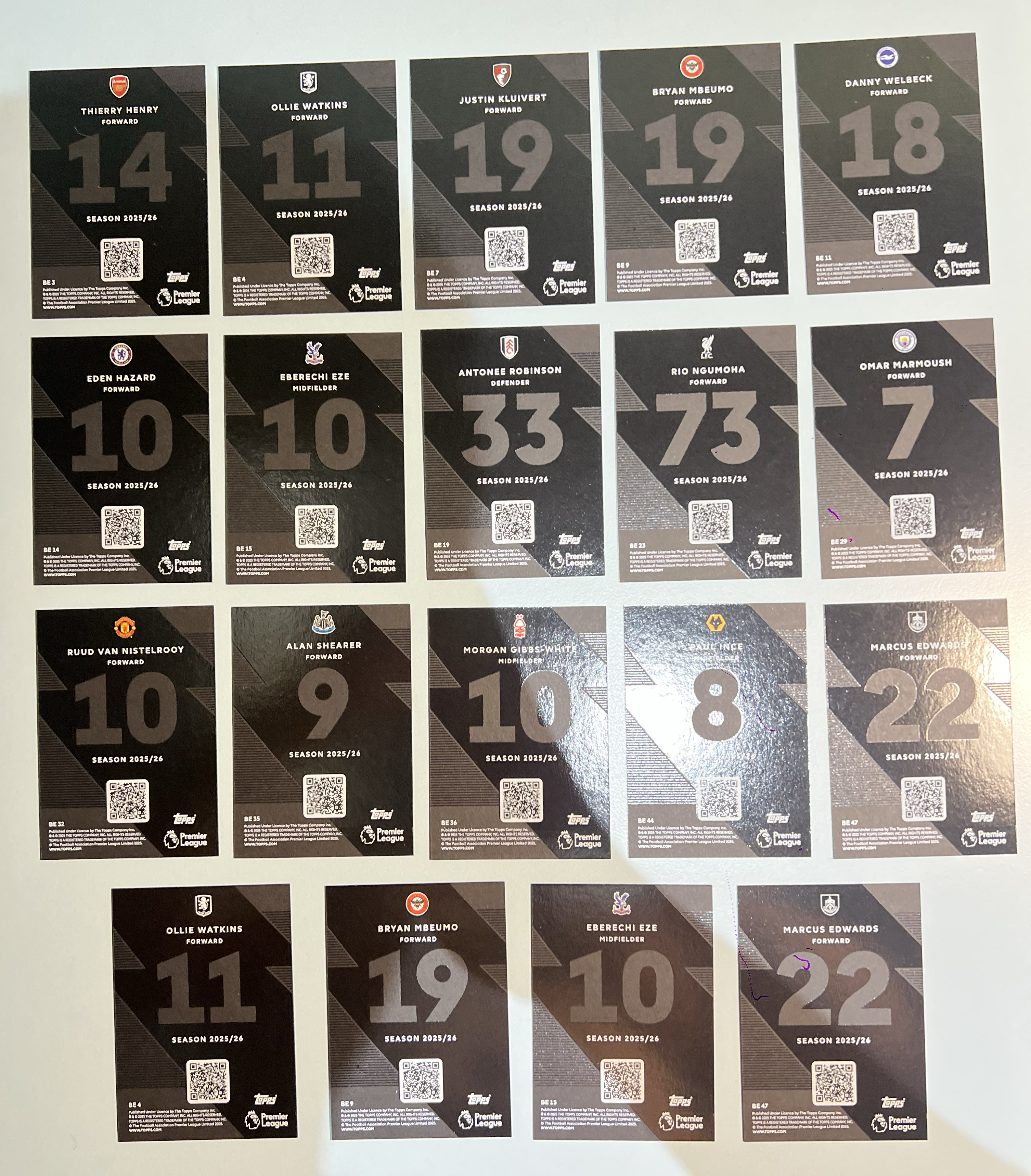 2025-26 Topps 英超Hobby Thierry Henry RC 英超Hobby系列 19张lots 黑边典藏特卡 亨利 姆贝乌莫 阿扎尔 艾泽 恩古莫哈 马尔穆什 范尼 阿兰希勒 曼联