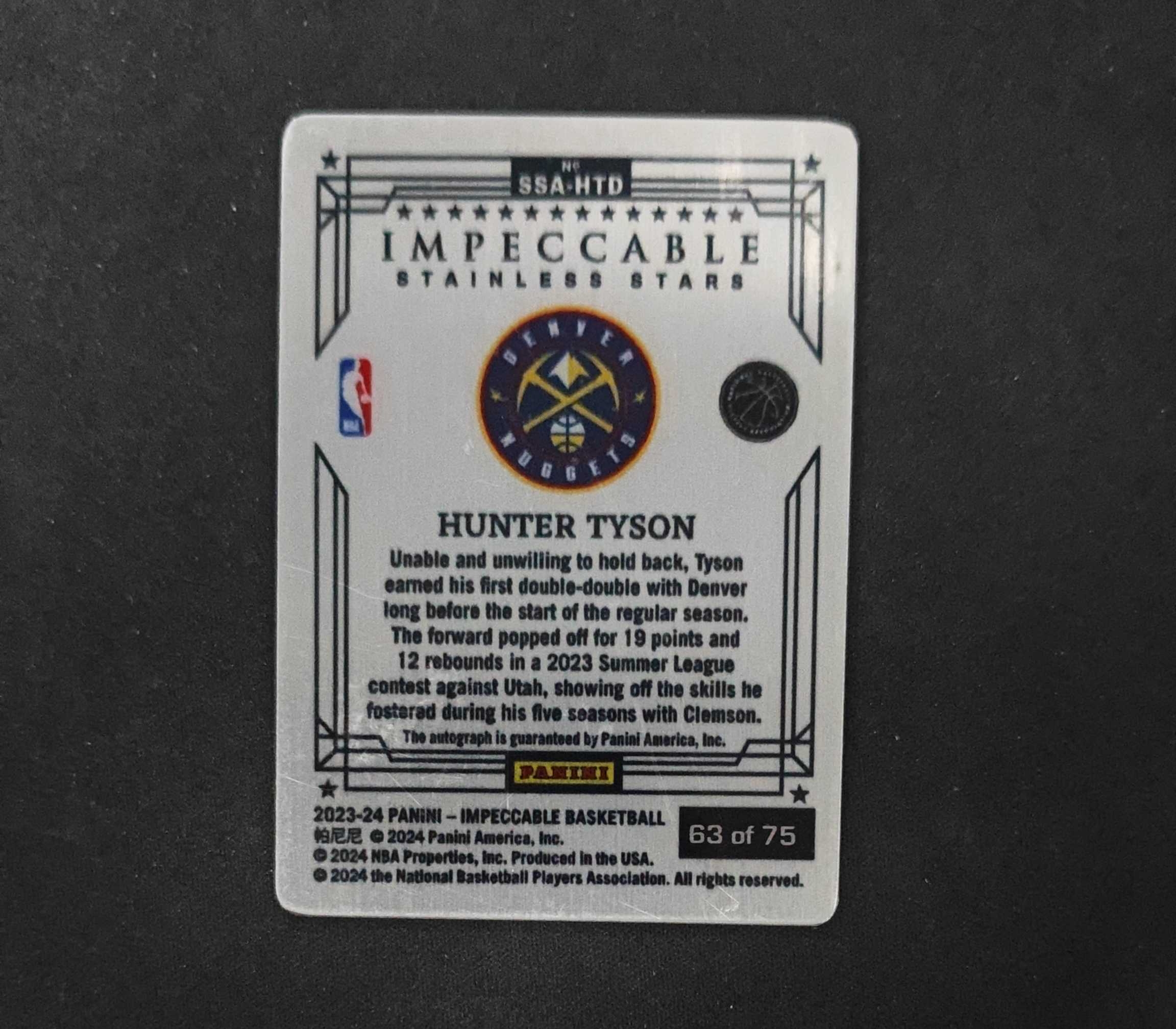2023-24 Panini Impeccable Hunter Tyson RC 【SC拍卖】小真金 新秀 掘金 泰森 75编 铁板签 卡签 签字 收藏必备(阿怪)