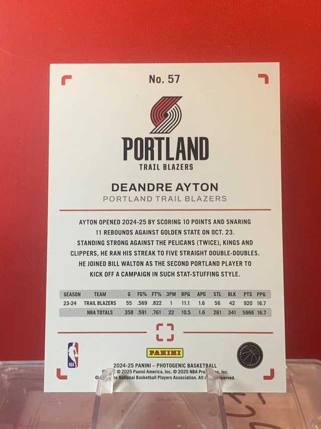 (老末精品代拍) 2024-25 Panini Photogenic Deandre Ayton 德安德烈 艾顿 开拓者 上镜 顺丰寄付 X02