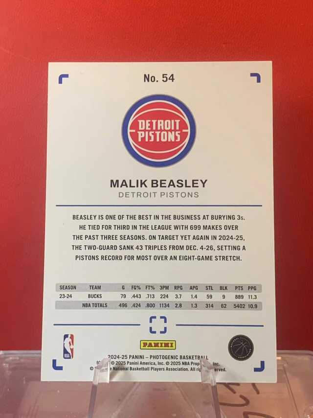 (老末精品代拍) 2024-25 Panini Photogenic Malik Beasley 马利克·比斯利 活塞 上镜 顺丰寄付 X02
