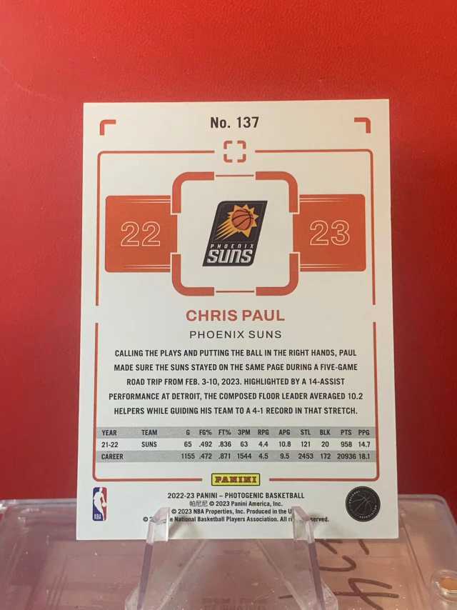 (老末精品代拍) 2022-23 Panini Photogenic Chris Paul 克里斯 保罗 CP3 太阳 《 热门球星 收藏必备 》 上镜 顺丰寄付 X02