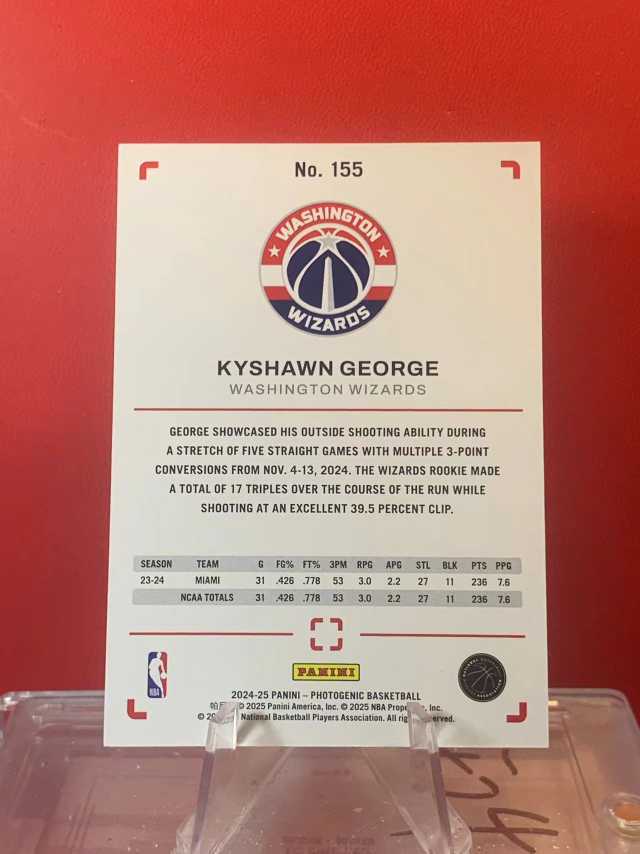 (老末精品代拍) 2024-25 Panini Photogenic Kyshawn George RC 凯肖恩 乔治 新秀 奇才 上镜 顺丰寄付 X02