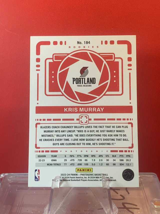 (老末精品代拍) 2023-24 Panini Photogenic Kris Murray RC 克里斯 莫里 开拓者 新秀 上镜 顺丰寄付 X02