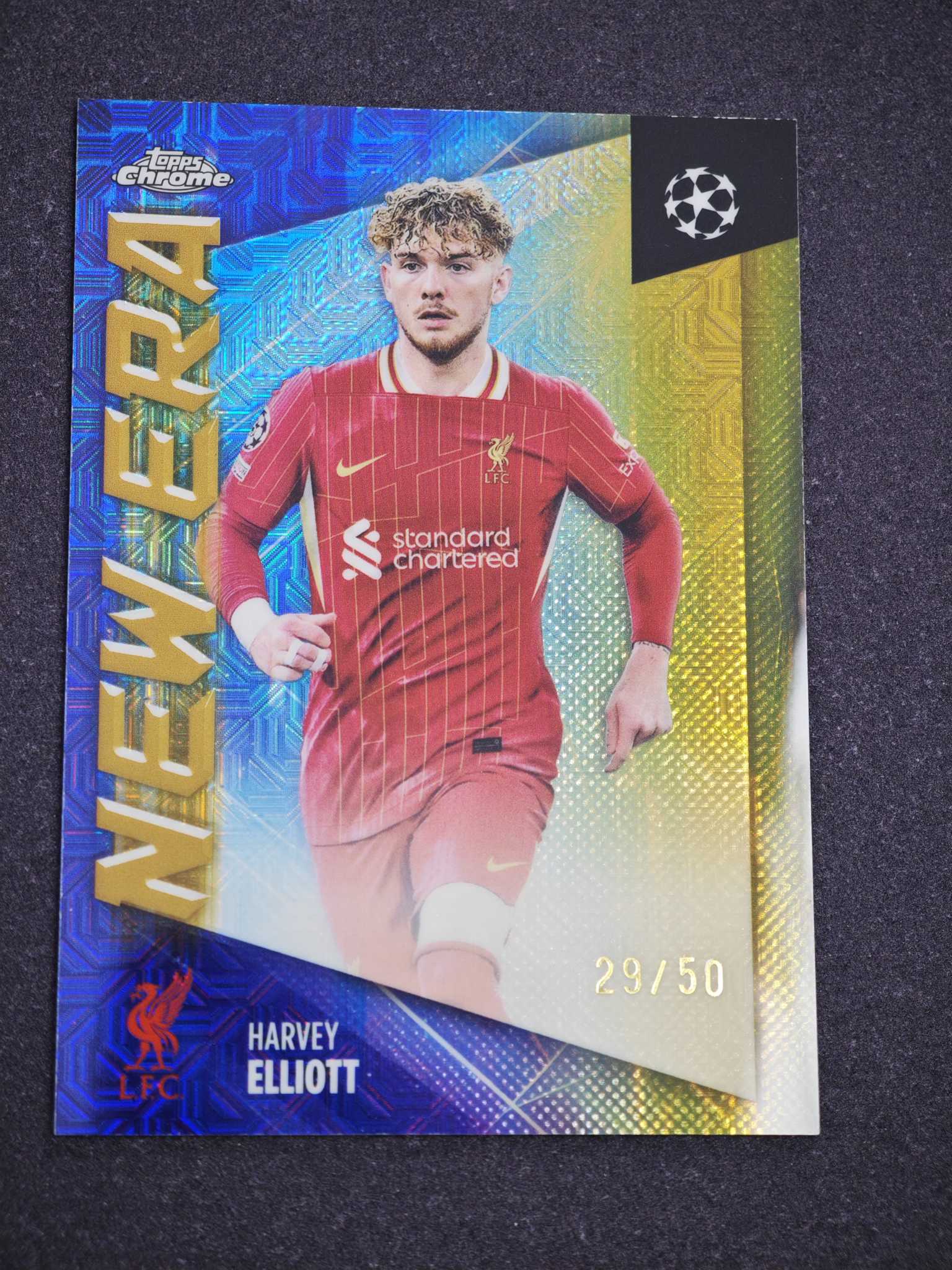 【小灰机】 2025 Topps Chrome 日版 樱花 Harvey Elliott 哈维 埃利奥特 利物浦 29/50编 金mojo折 瑕疵如图 安然