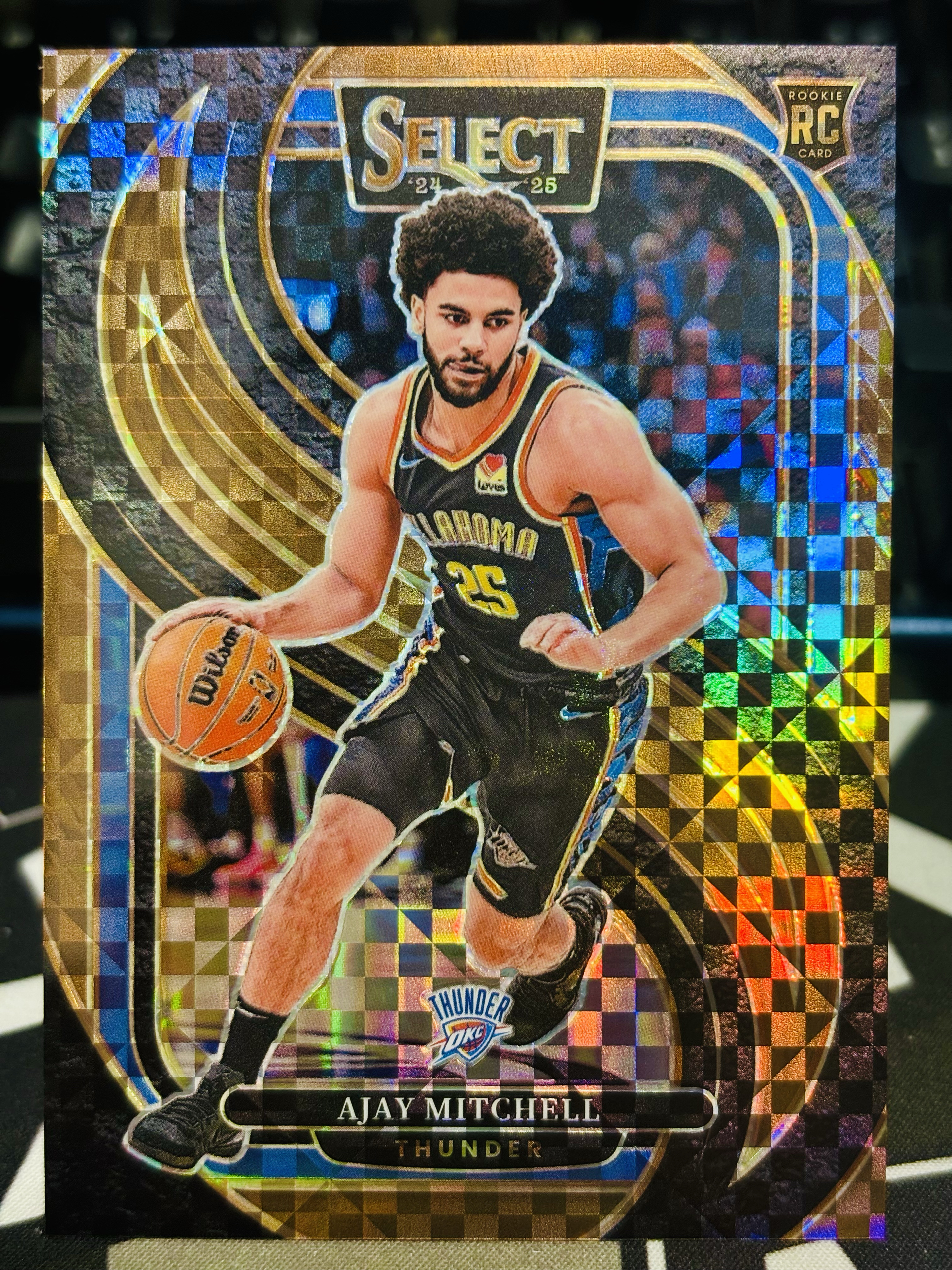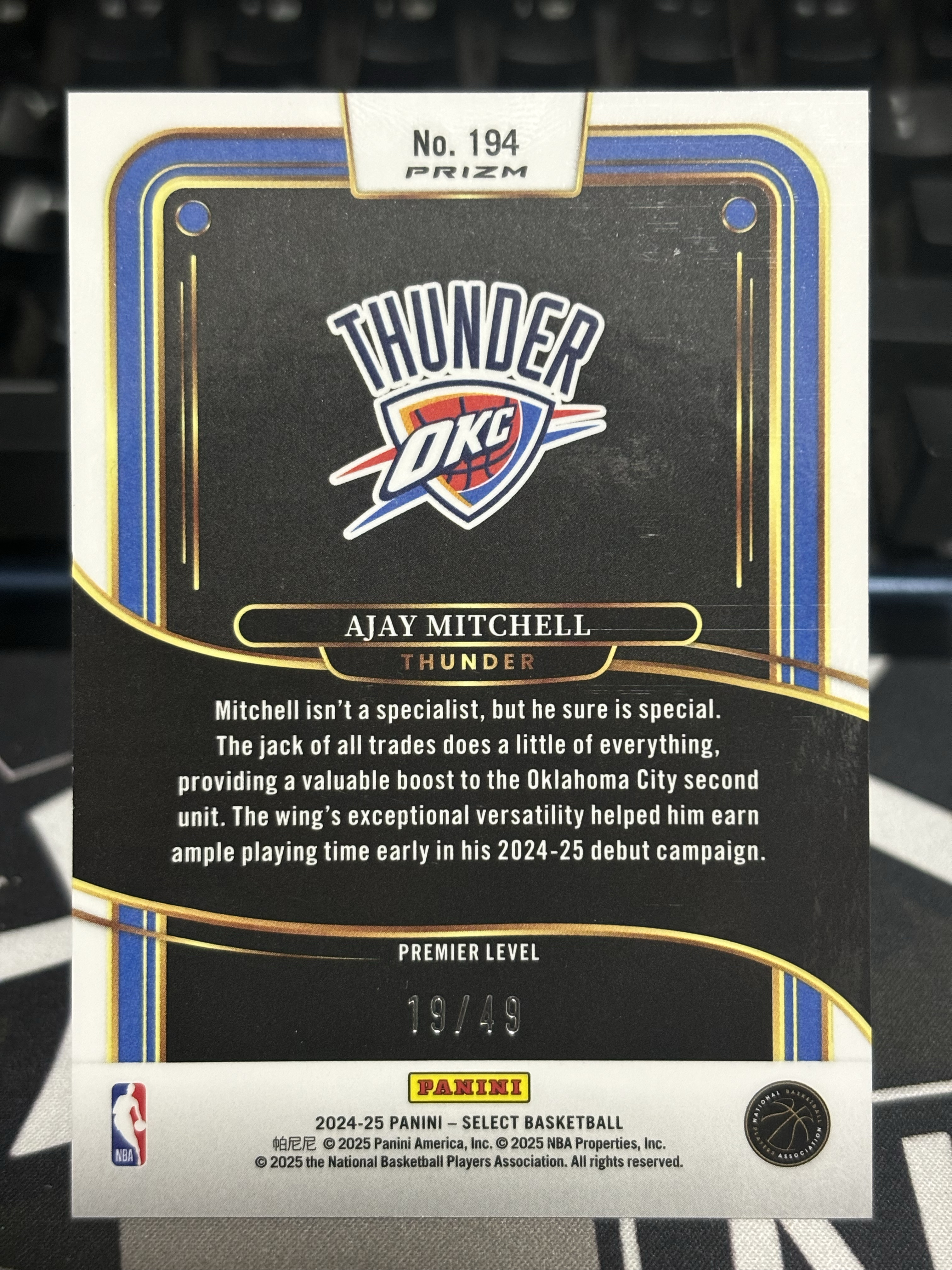 2024-25 Panini Select Ajay Mitchell RC 雷霆队 阿杰 米切尔 新秀 49编 二级铜格子折 19/49编 谢伊 吉尔杰斯 亚历山大、霍姆格伦队友 表现炸裂