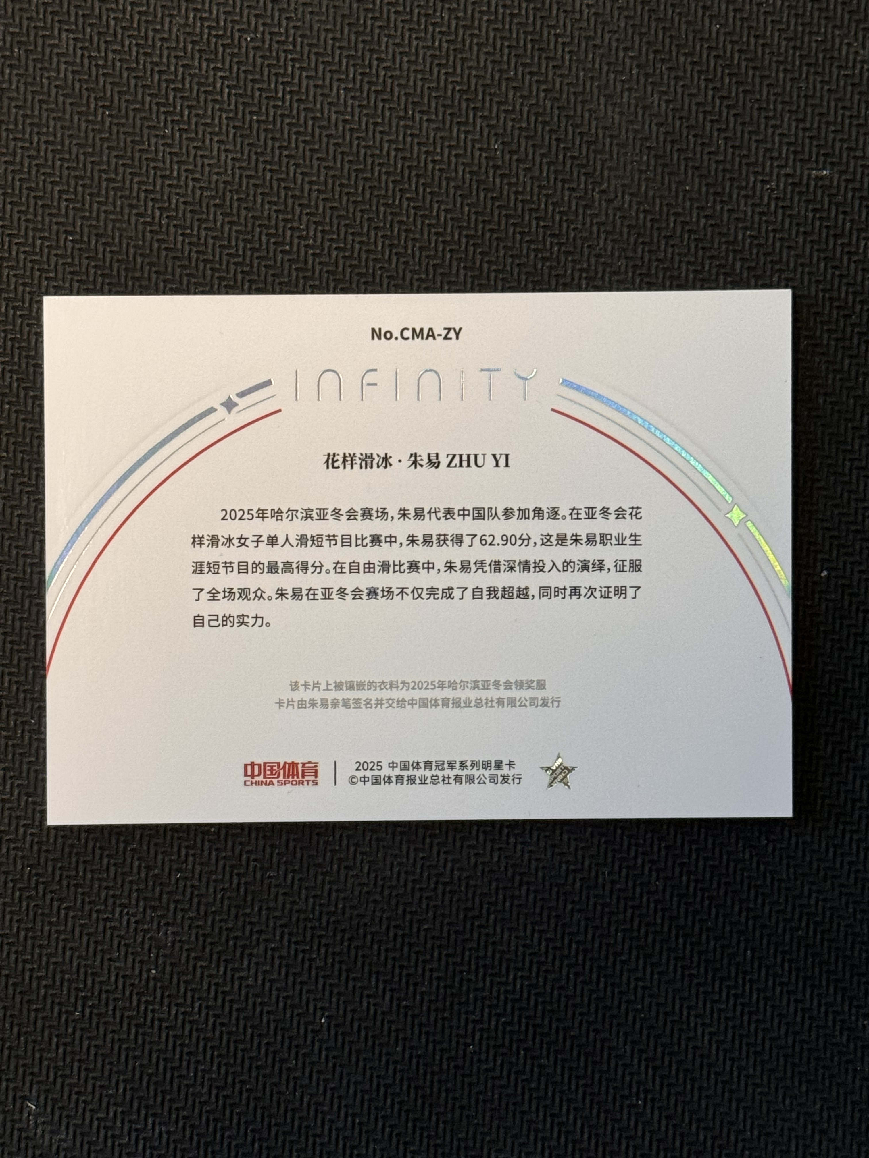 2025 奇卡 QICA 中国体育 无限 朱易 【Cardsanova卡舍花样滑冰 限25 世纪之约 领奖服物料+签字 卡品如图 签名清晰8个尖角 底面无伤 可评级PSA BGS 收藏必备