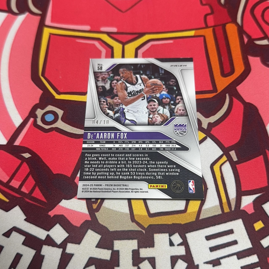 2024-25 Panini Prizm De'Aaron Fox 国王 达龙 福克斯 狐狸 04/10编 金波纹折 折射 超低编 卡品如图 投资收藏必备