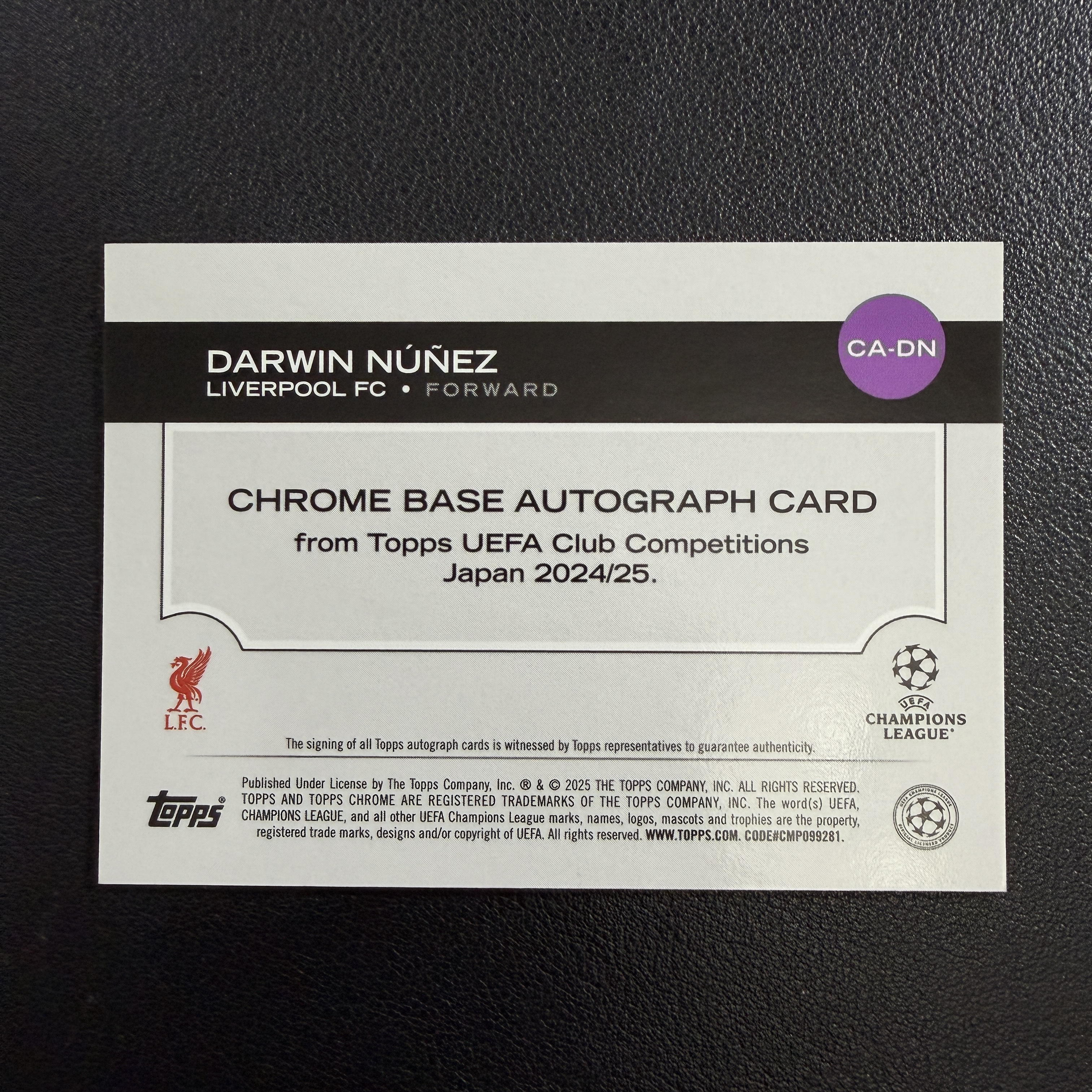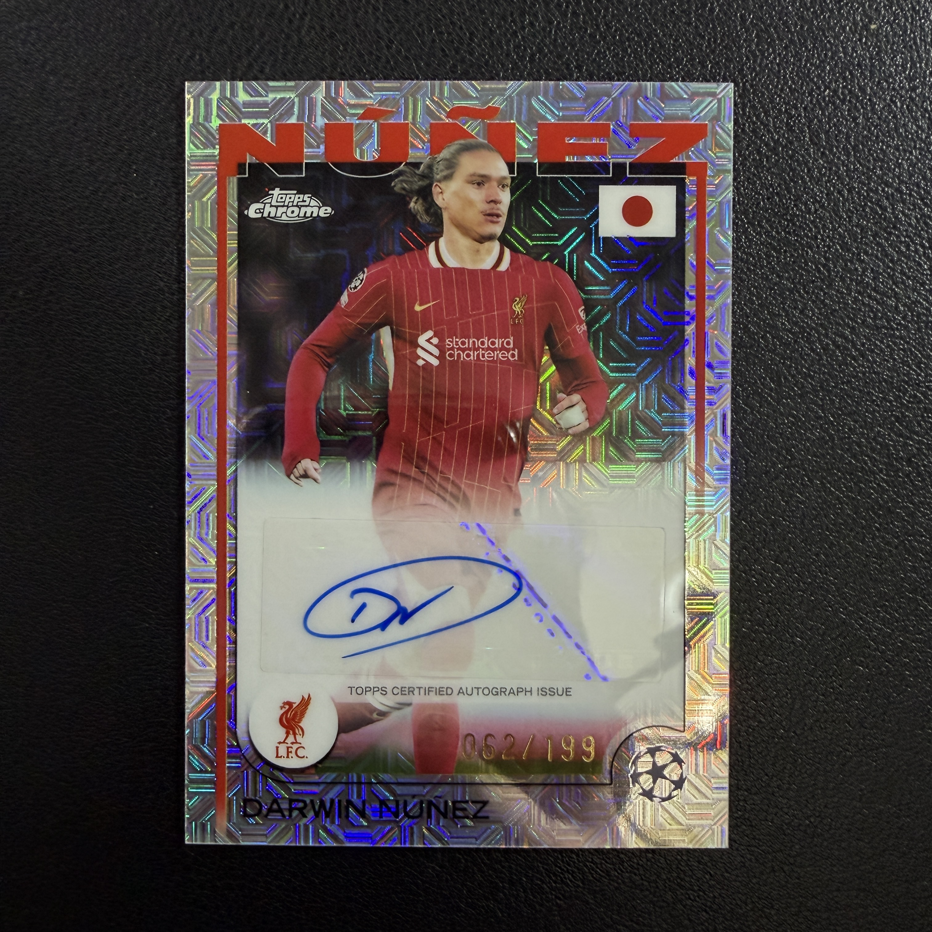 2025 Topps Chrome Darwin Nunez H 欧冠TC 日版 樱花 达尔文 努涅斯 利物浦 红军 乌拉圭 199编 银Mojo折 折射 签字 签名 收藏必备 极光