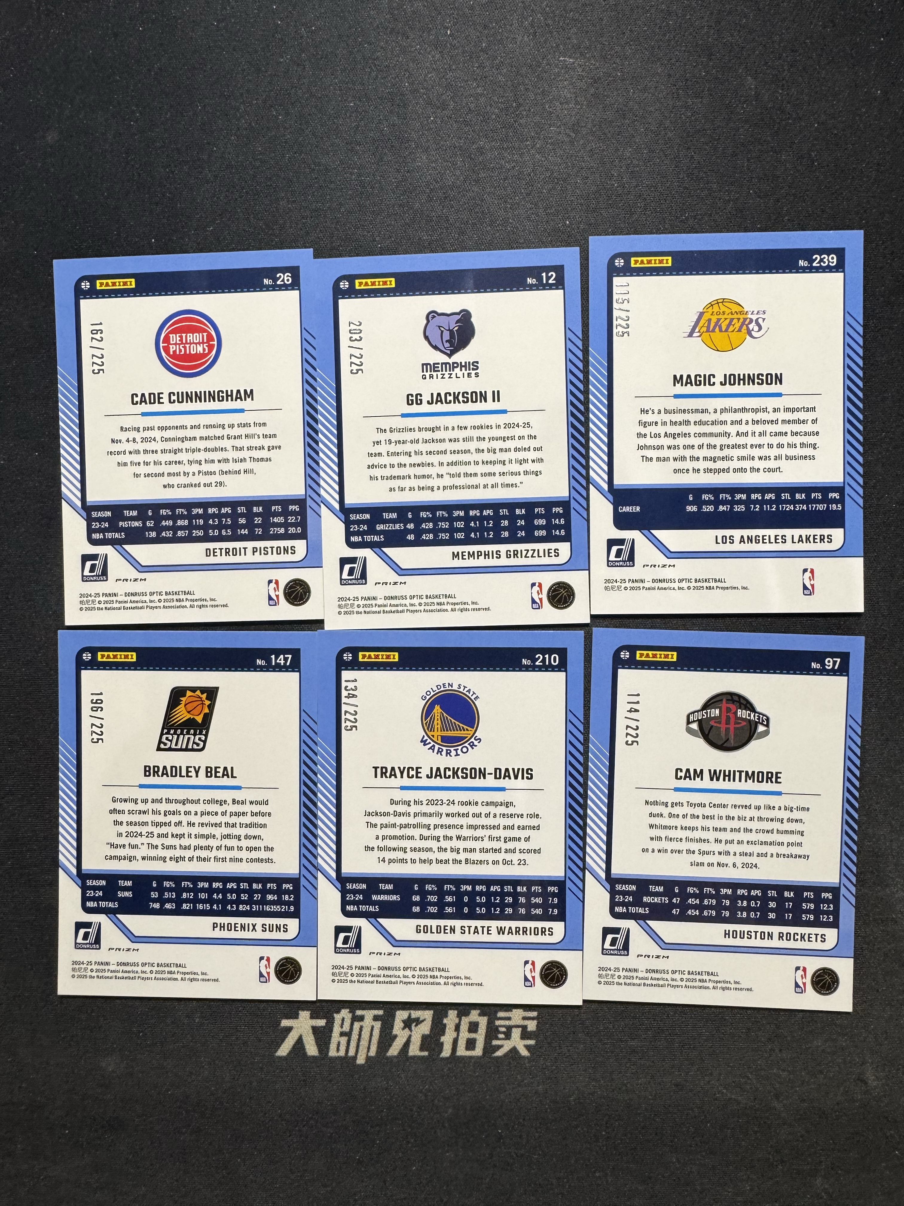 【大师兄拍卖】2024-25 Panini Donrus Optic 康宁汉姆 杰克逊 约翰逊 比尔 杰克逊 惠特莫尔 杜蕾斯op /225编 蓝折 6张 细节看图 -Jas-