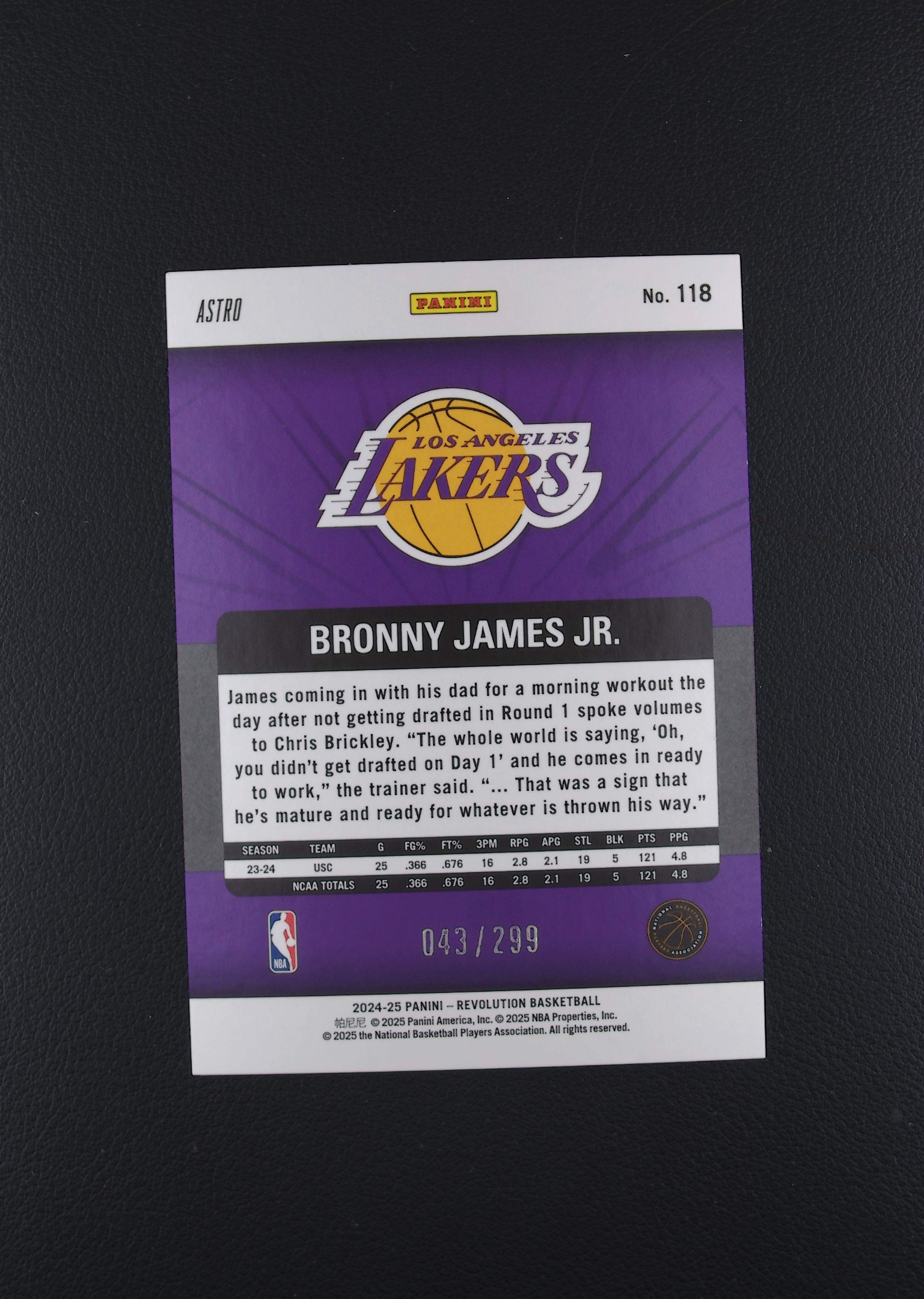 ![2024-25 Panini Revolution Bronny James Jr RC [808零手续] 革命 小布朗尼 詹姆斯 43/299编 星星折 新秀 湖人 凑套必备 卡品如图 skrich](https://images.cardhobby.com/4be287362ce1294e6ffc1898f3d7915a1762894005235.jpg)