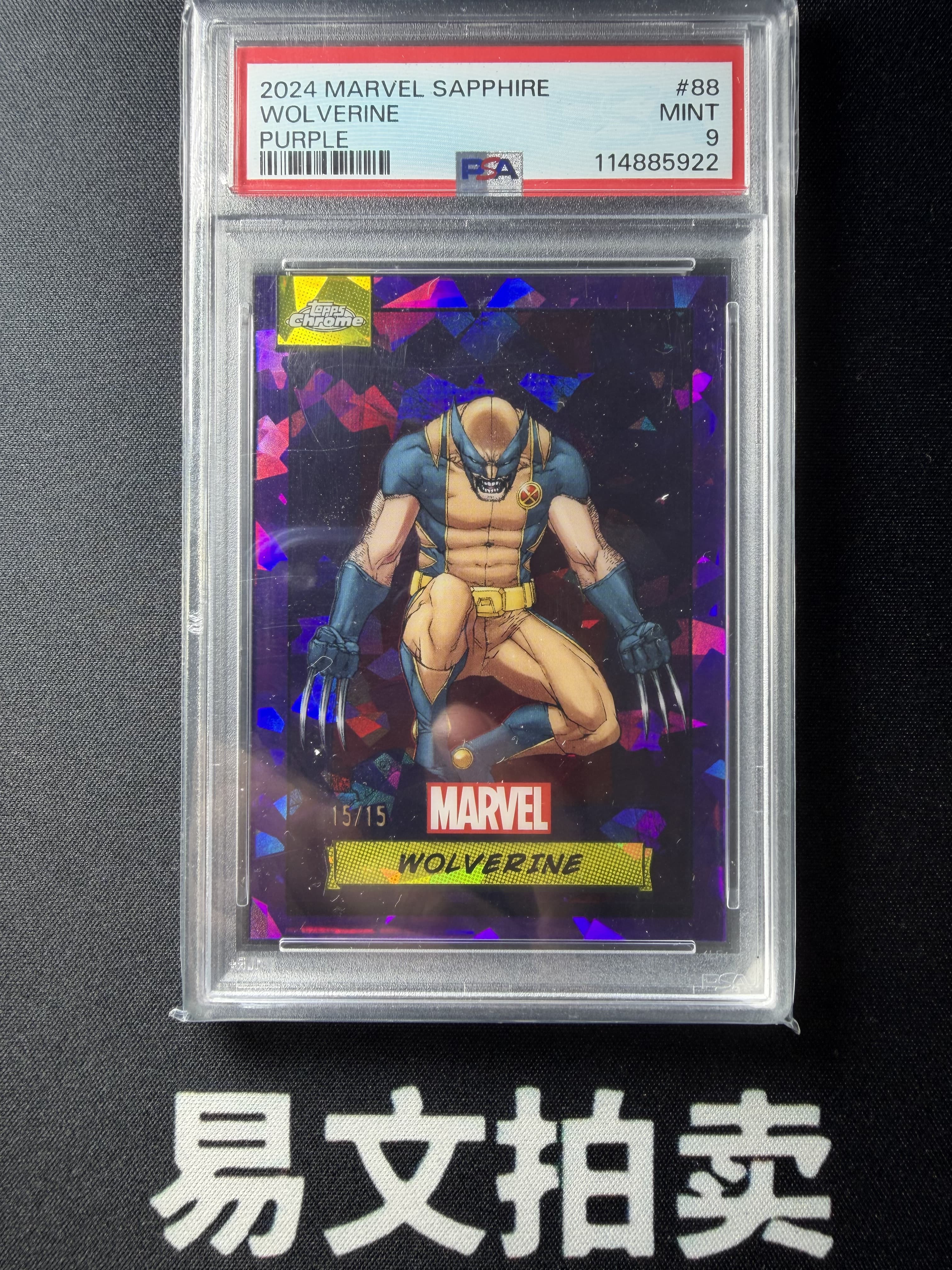 【易文拍卖 超级回款】2024 Topps Chrome Marvel MCU Sapphire 漫威TC 元年 蓝宝石 WOLVERINE 金刚狼 15/15编 尾编 紫碎冰折 PSA9分 #赵总
