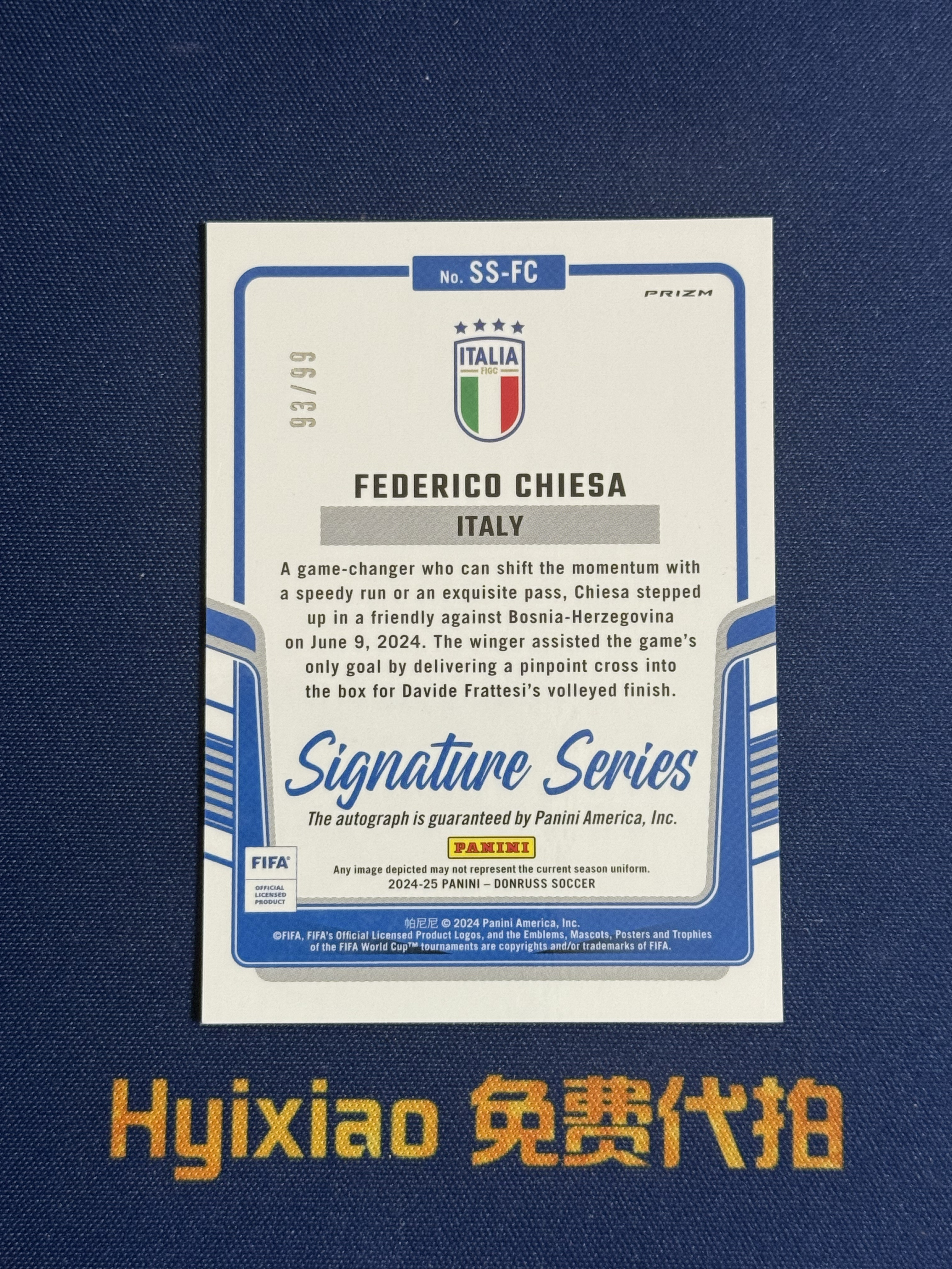 2024-25 Panini Donruss Federico Chiesa (免费代拍)基耶萨 意大利 尤文图斯 利物浦 杜蕾斯FIFA 99编 蓝折 折射 签字 SS签 卡品如图 jx11