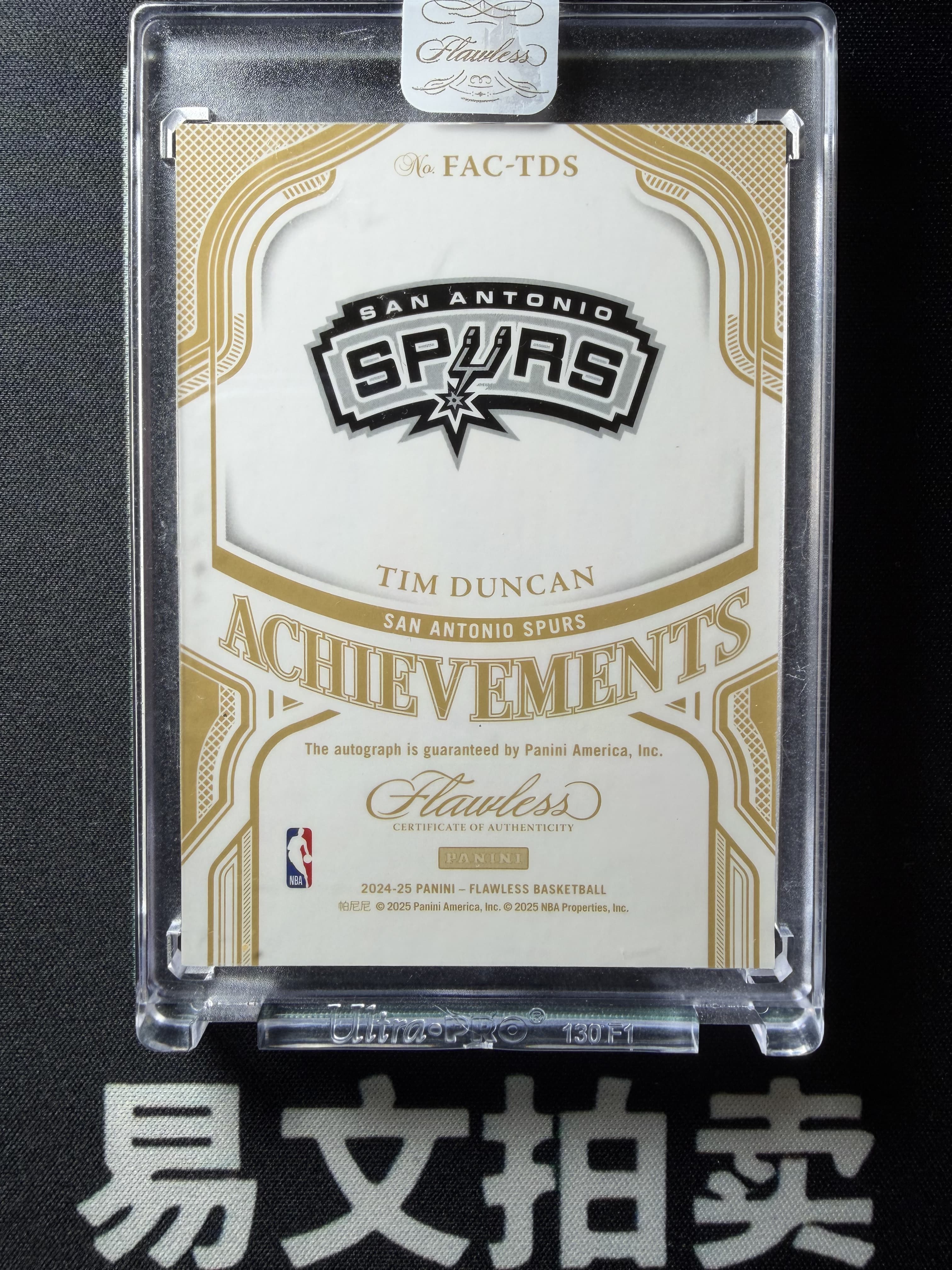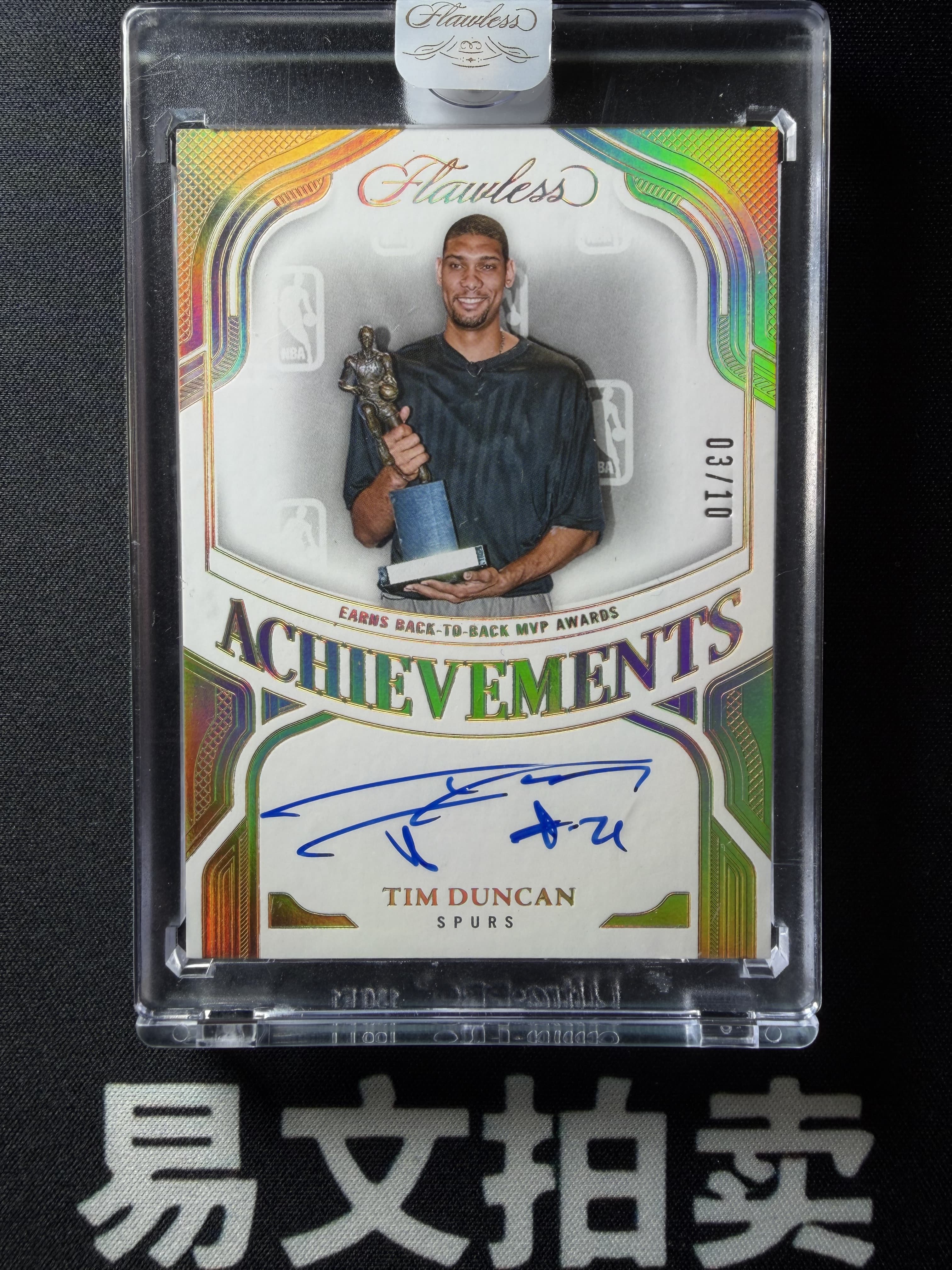 【易文拍卖 超级回款】2024-25 Panini Flawless 手提 TIM DUNCAN 蒂姆 邓肯 马刺名宿 石佛 03/10编 捧杯 MVP 奖杯 卡签字签名 原封砖 #tim添