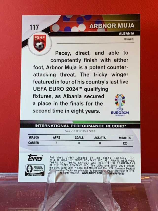 (老末代拍)E22 2024 Topps Chrome arbnor muja 阿尔巴尼亚 穆贾 ND首秀 蓝宝石 碎冰折 欧洲杯TC 元年 顺丰寄付 免费代拍 不保卡品