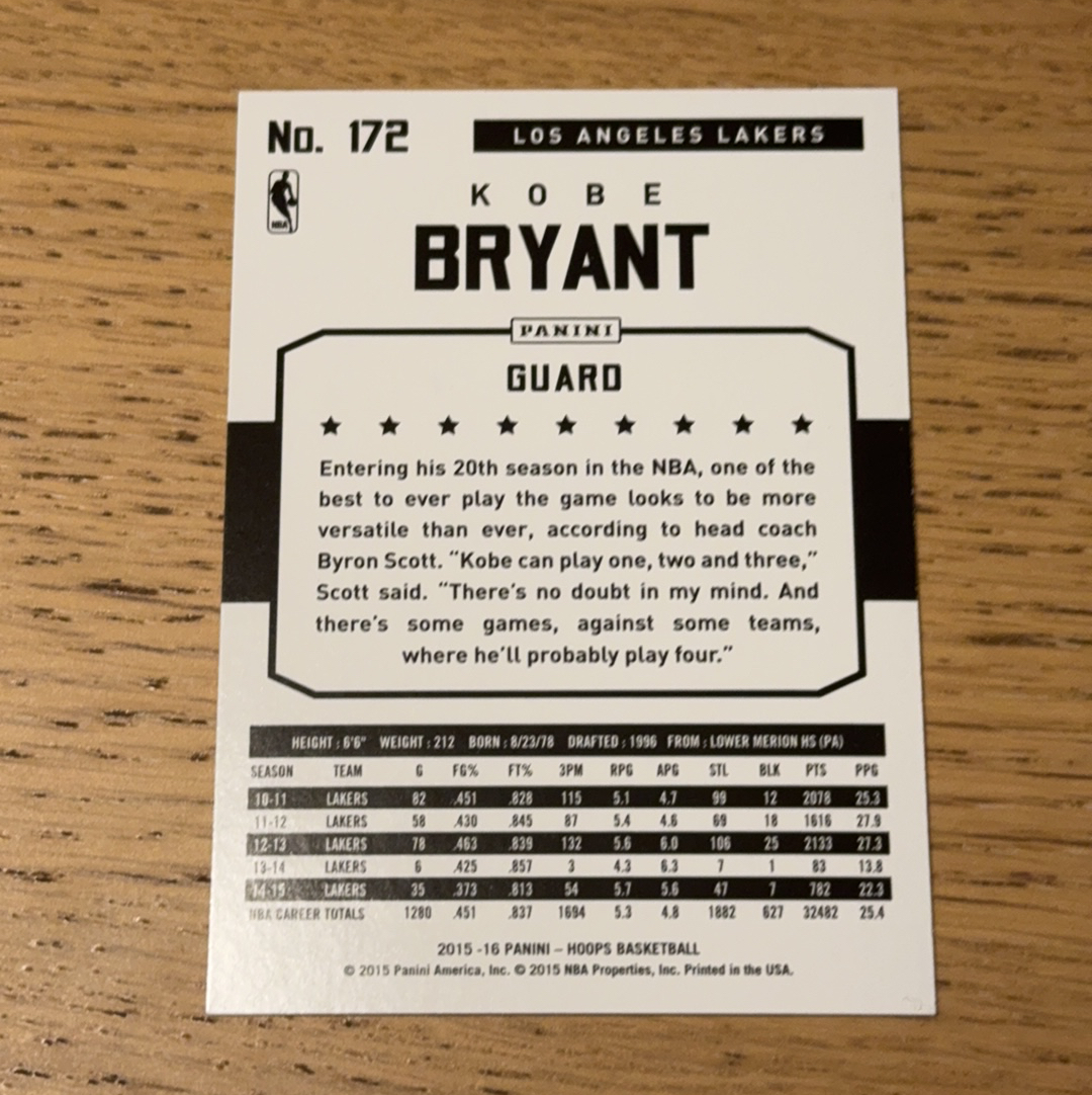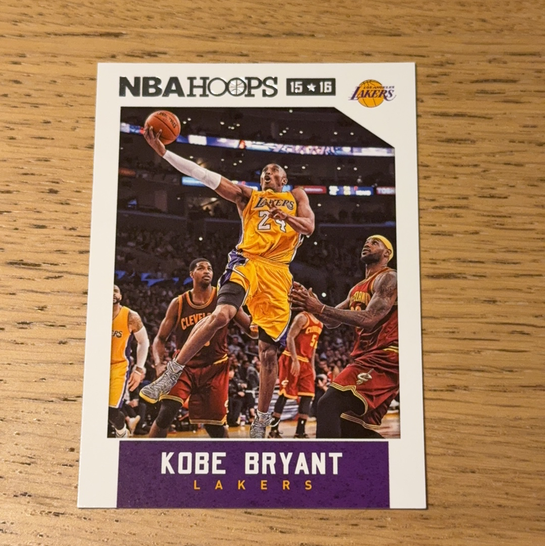 2015-16 Panini NBA Hoops Kobe Bryant 洛杉矶湖人 科比布莱恩特 base vs 骑士队 勒布朗詹姆斯背景 一张卡两个超级巨星 24号球衣