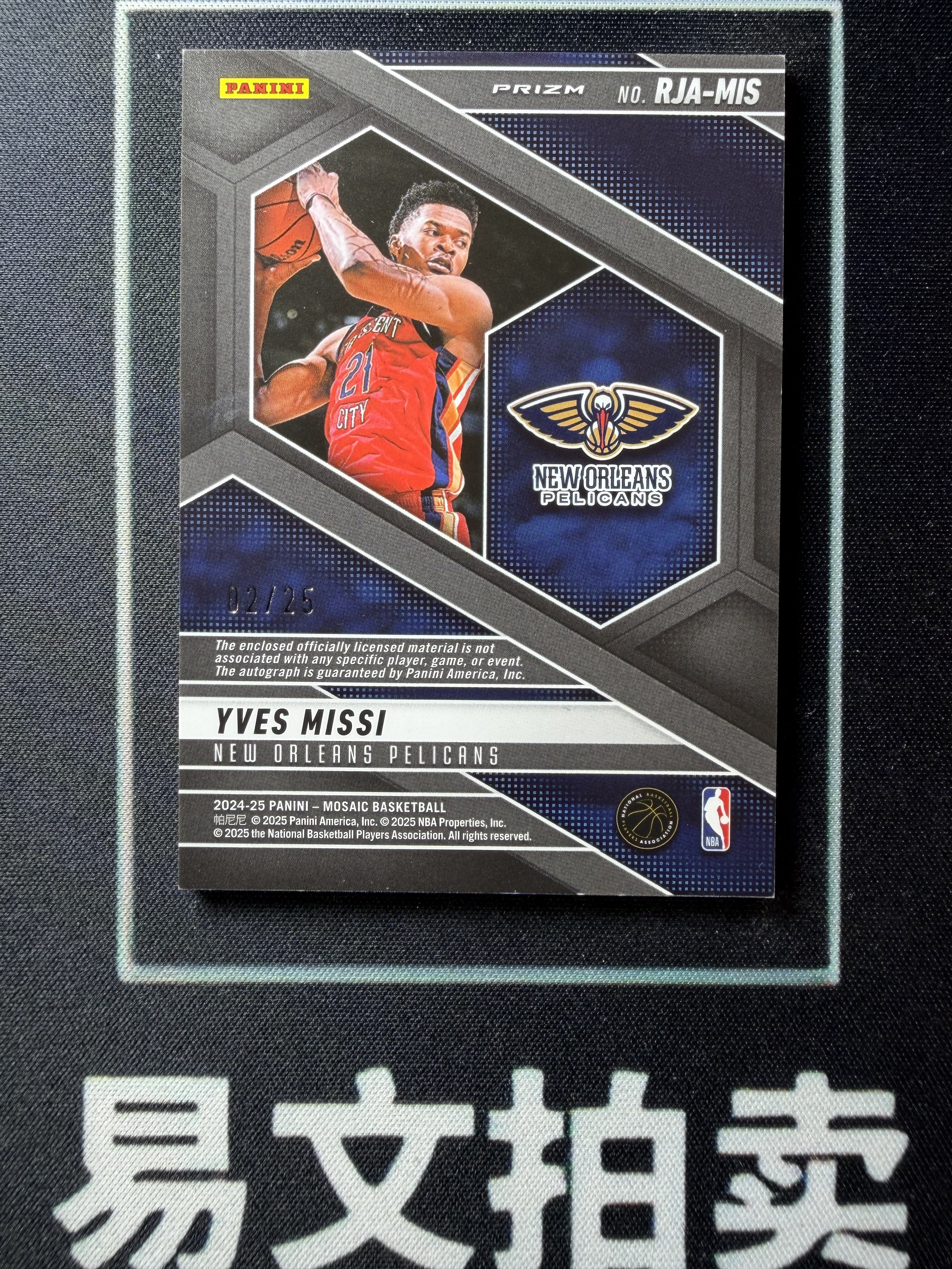 【易文拍卖 超级回款】2024-25 Panini Mosaic 马赛克 YVES MISSI 鹈鹕 伊夫 米西 RC新秀 02/25编 白折 RPA 三色Patch 签字签名 #tim添