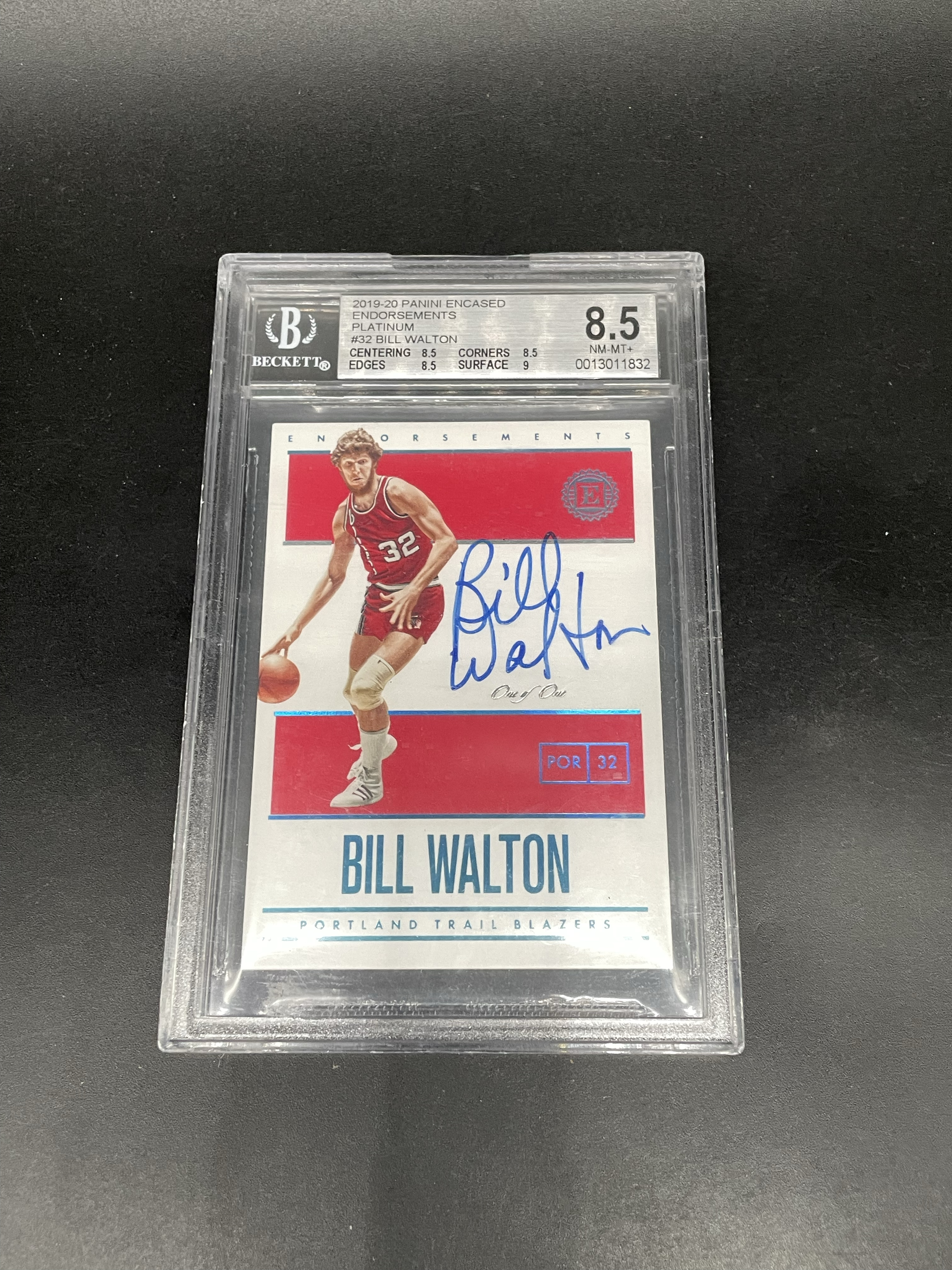 【白鸟代卖 庐山 寄付特快】2019-20 云端系列 encased 湖水蓝 比尔 沃顿 1/1编ofo 一编一 签字 卡签 BGS8.5/10分 完美墨迹 壳瑕如图