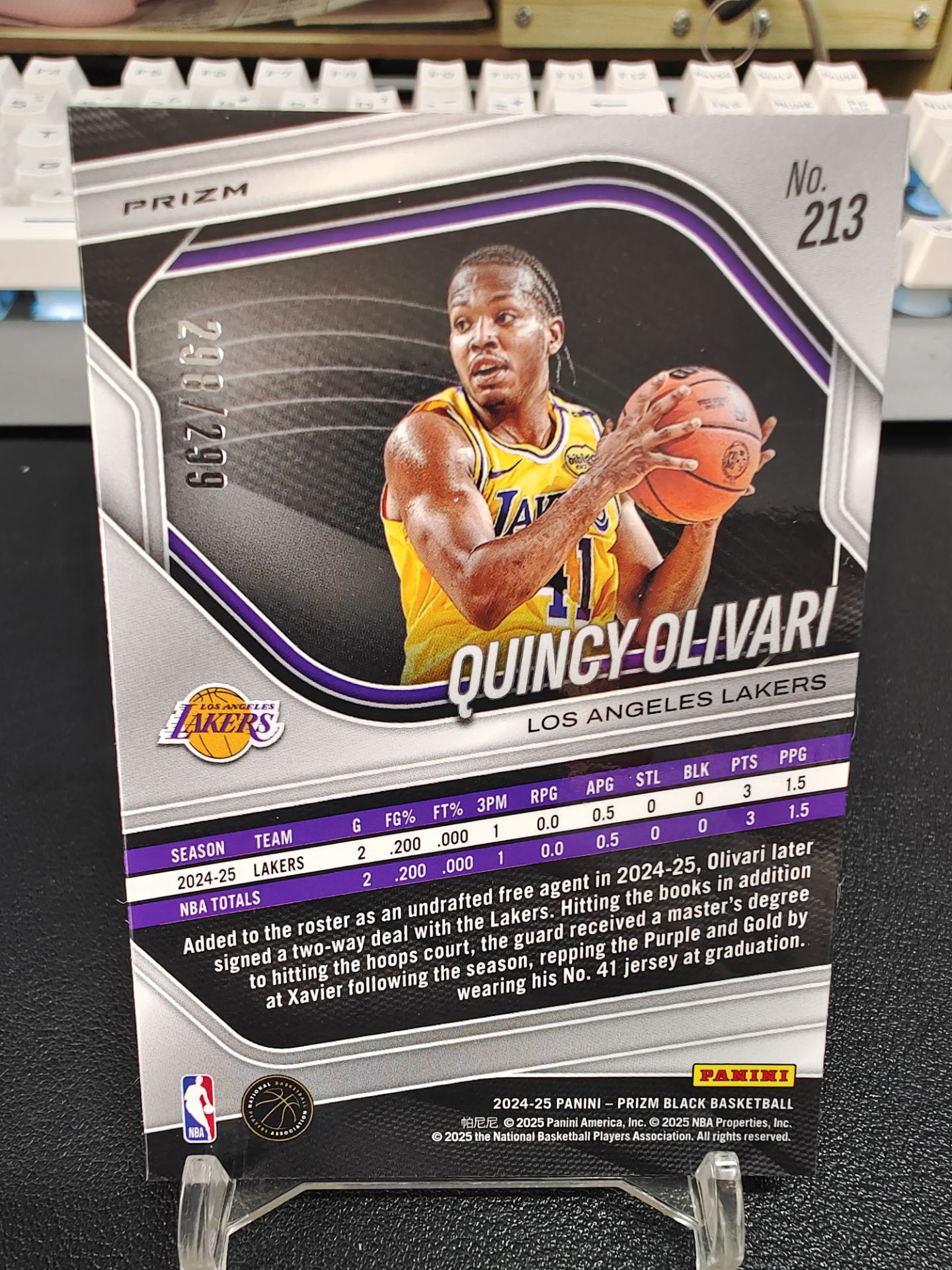 【浩行拍卖 截标预付82%】2024-25 Panini Prizm Black Quincy Olivari 湖人 昆西 奥利瓦里 新秀 RC 红折 折射 298/299编 专收必备 瑕疵看图「白水248」1112E01恁