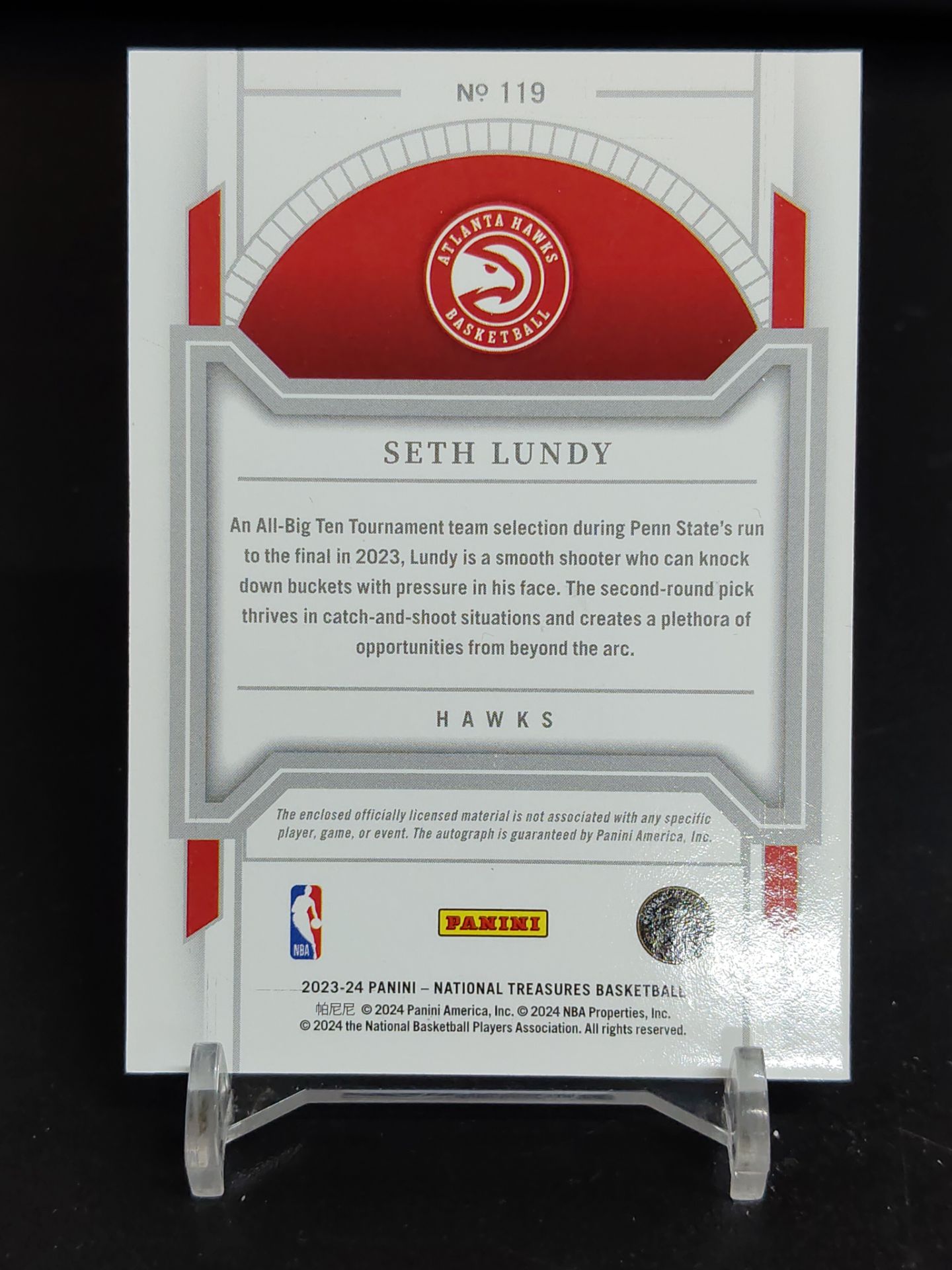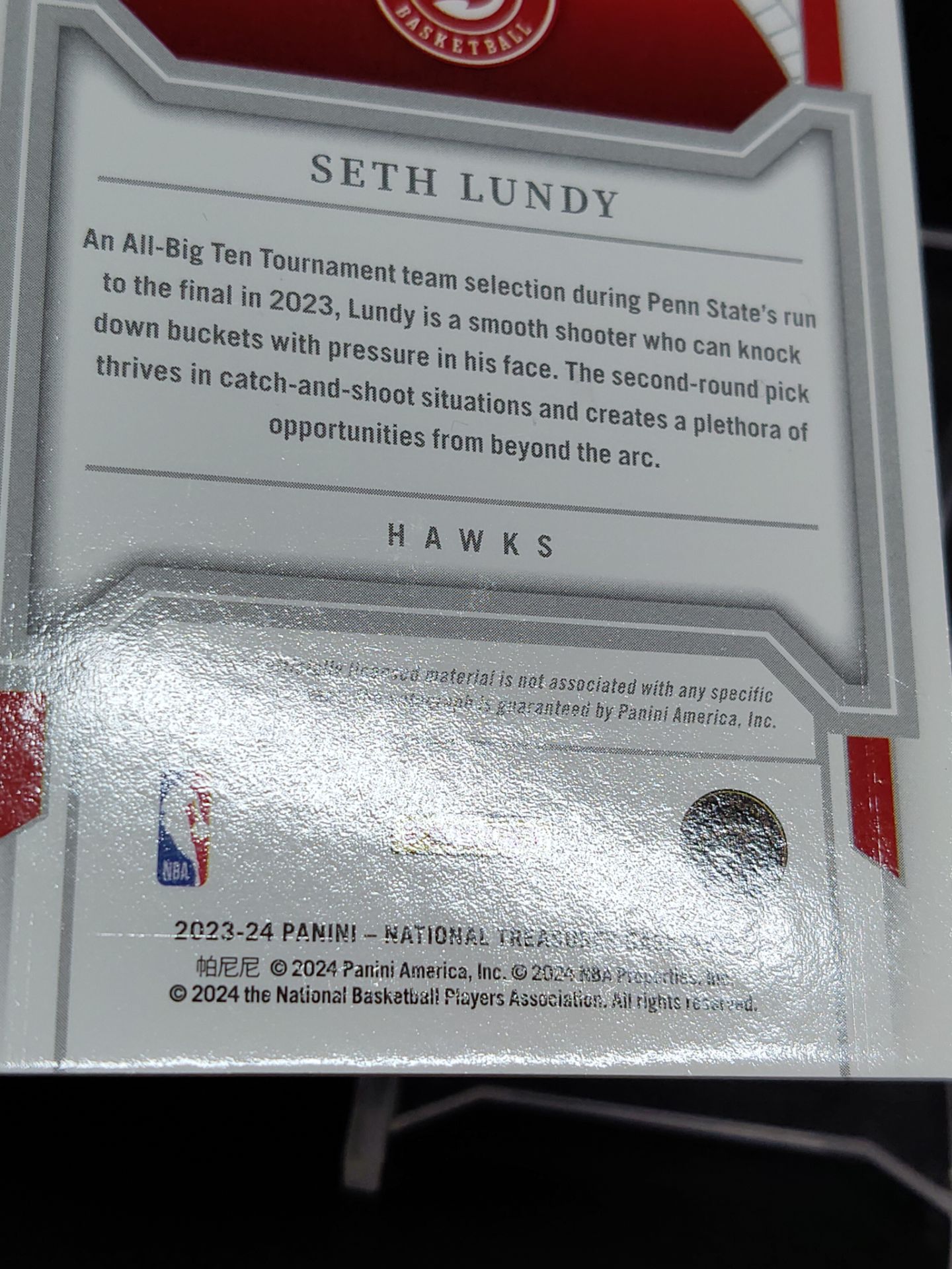 【浩行拍卖 截标预付82%】2023-24 panini national treasures seth lundy 国宝 老鹰 塞思 伦迪 RC 新秀 签字卡签 球衣物料 patch rpa 43/99编 瑕疵看图「牛羊」1112D06夢