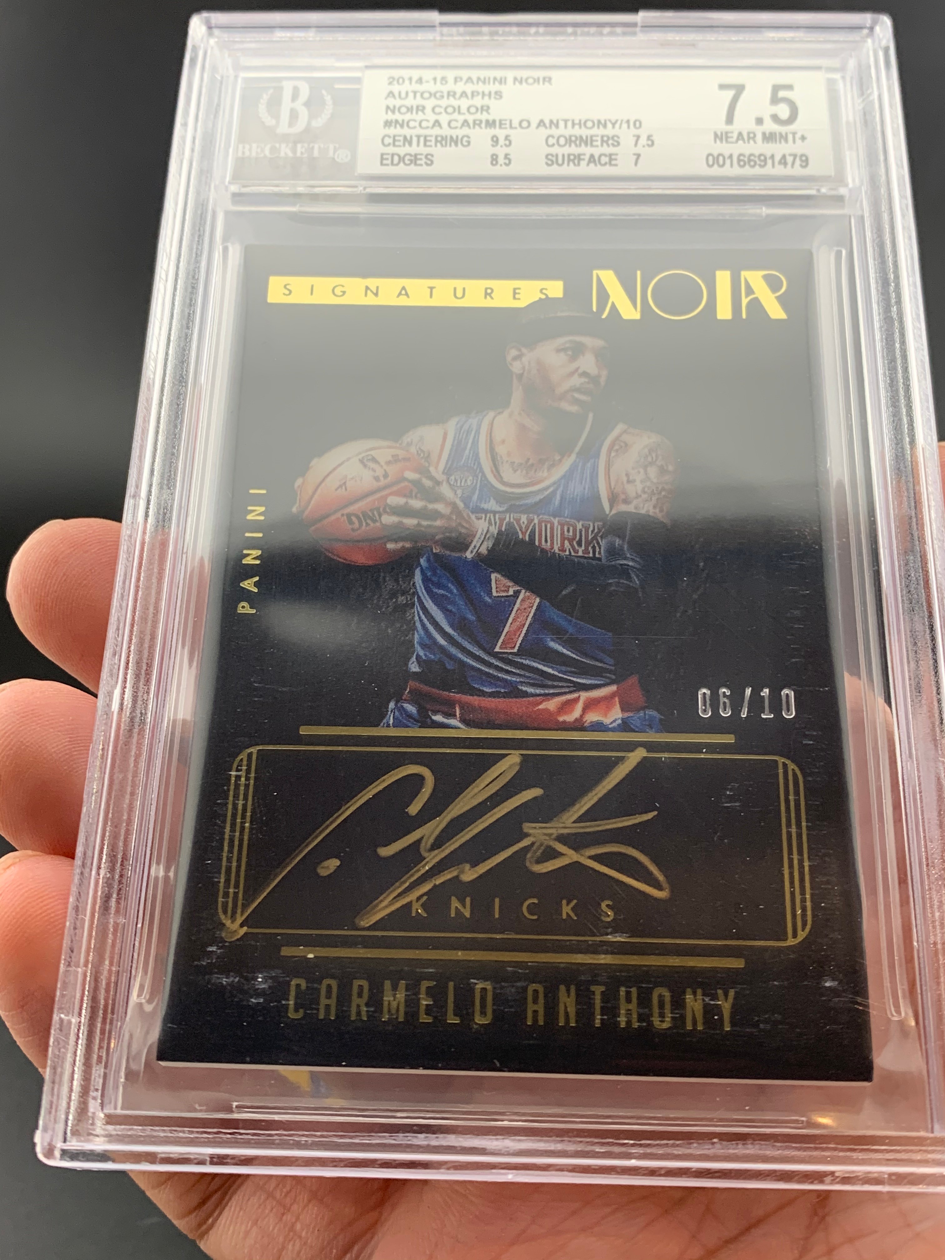 【微微辣代卖】X1-11扣篮哥 2014-15 Panini Noir Carmelo Anthony 诺尔 卡梅隆 安东尼 06/10编 签字 卡签 金笔签 BGS7.5 墨迹不错