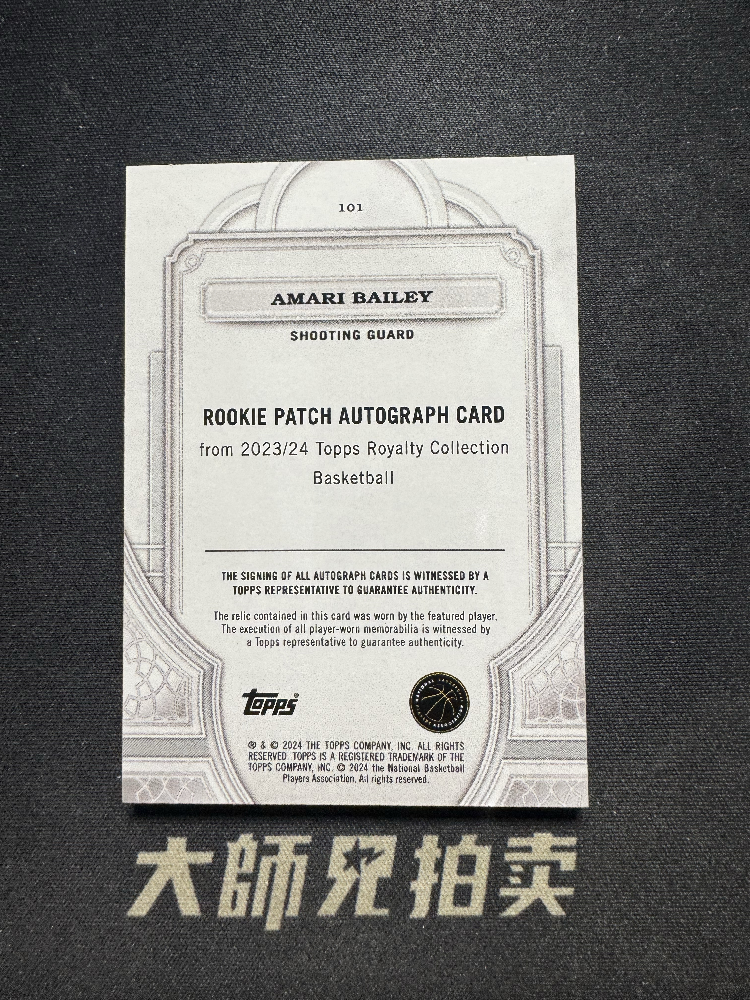 【大师兄拍卖】2023-24 Topps Royalty Amari Bailey 王权 新秀RC 阿马里 贝利 黄蜂 大窗双色球衣物料Patch 卡签 签字 RPA /99编 通行品 -马文-