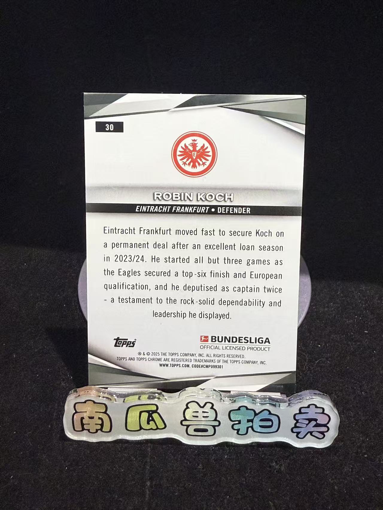 2025 Topps Chrome Robin Koch 德甲 蓝宝石 法兰克福 罗宾 科赫 99编 绿碎冰折 折射 不保卡品 南瓜兽Joe11.13