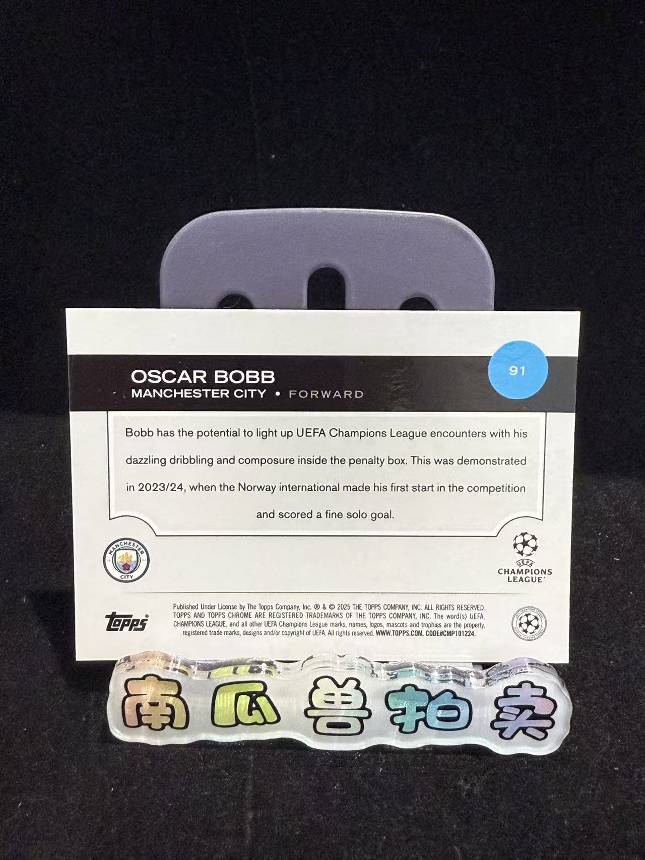 2025 Topps Chrome OSCAR BOBB 欧战TC 曼彻斯特城 鲍勃 175编 粉变形虫折 折射 不保卡品 南瓜兽Joe11.13