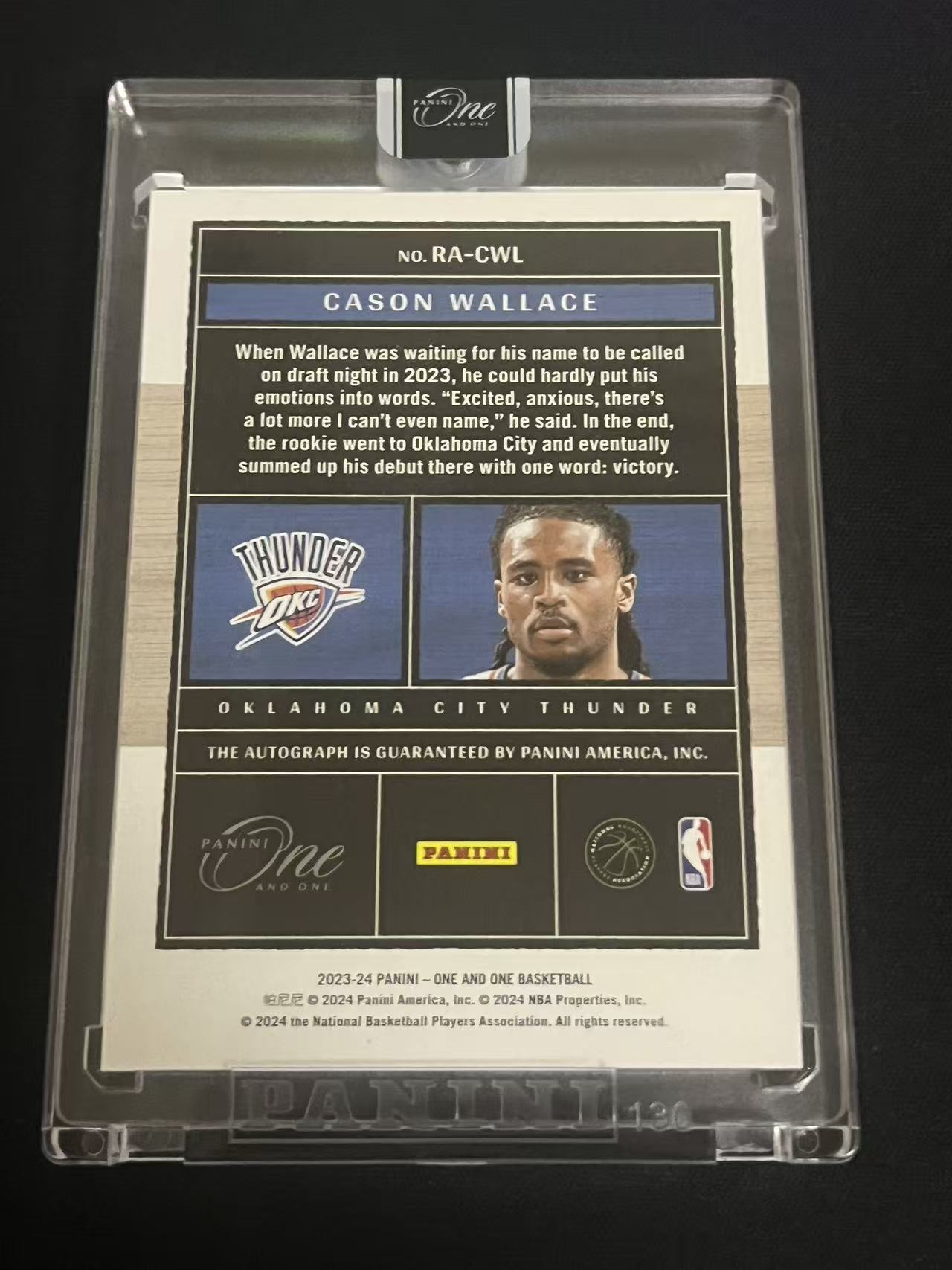 2023-24 Panini One and One Cason Wallace RC 雷霆 卡森-华莱士 新秀 签字 55/99编