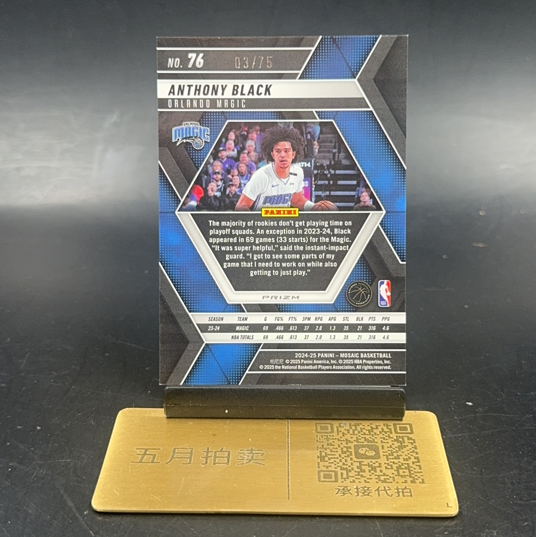 2024-25 Panini Mosaic Anthony Black 【五月拍卖 顺丰空运】 马赛克 布莱克 铜马赛克折 折射 75编 卡品如图 呆提伯斯a242