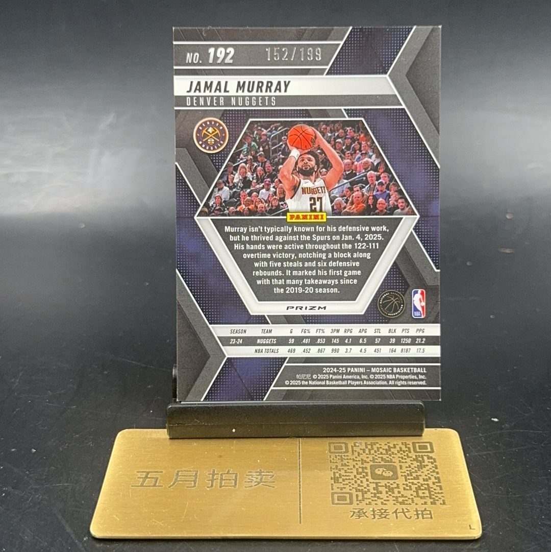 2024-25 Panini Mosaic Jamal Murray 【五月拍卖 顺丰空运】 马赛克 贾马尔 穆雷 蓝马赛克折 折射 199编 卡品如图 呆提伯斯a243