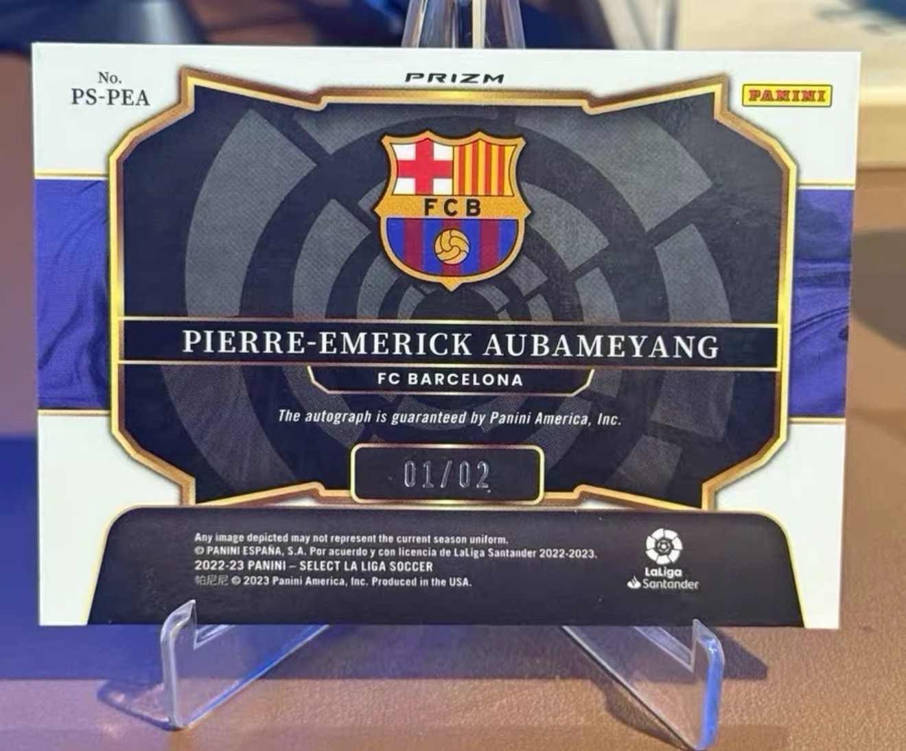2022-23 Panini Select Pierre-Emerick Aubameyang 西甲 巴萨 奥巴梅扬 美羊羊 1/2编 超低编 首编 签字 绿折 折射 base 特卡 卡品如图