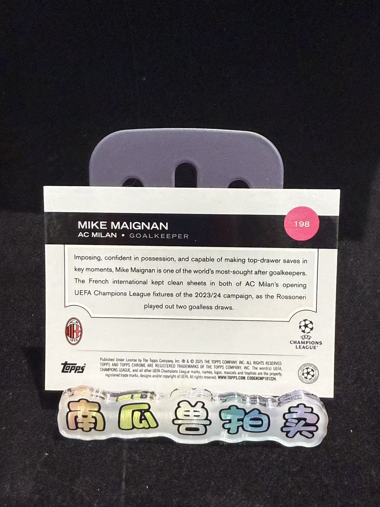 2025 Topps Chrome Mike Maignan 欧战TC AC米兰 迈尼昂 199编 青折 折射 不保卡品 南瓜兽Joe11.13