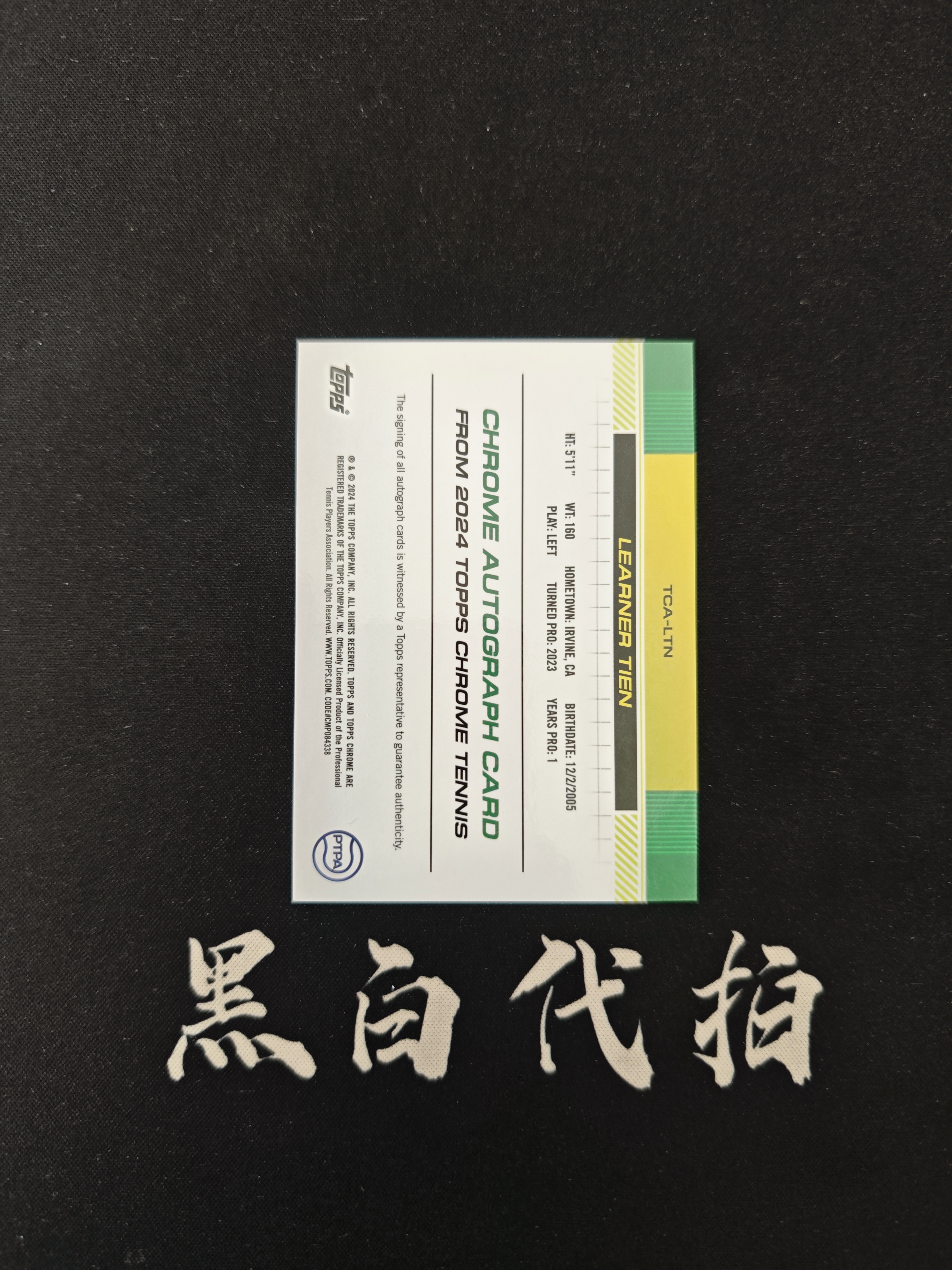 2024 Topps Chrome LEARNER TIEN RC 网球tc 勒纳 钱 新秀 RC 华裔网球选手 签字 墨迹如图 第一张 PTPA 卡品如图【多多15】