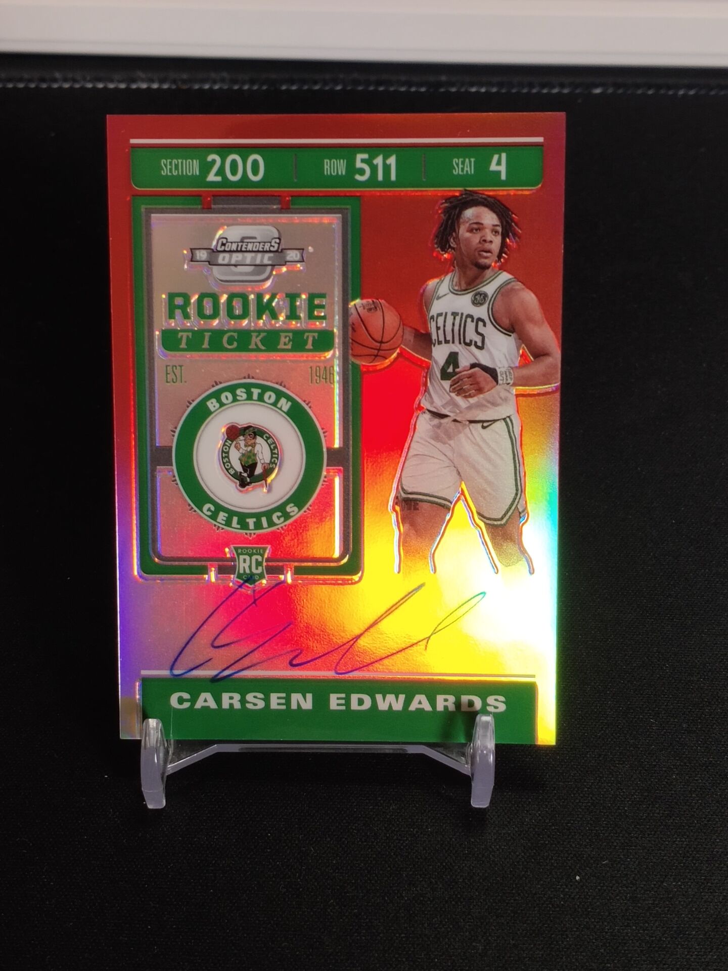 【浩行拍卖 截标预付82%】2019-20 panini contenders optic 球票 凯尔特人 卡森 爱德华兹 rc 新秀 红折 折射 签字 卡签 11/149编 墨迹如图 瑕疵看图「树新」1112P01緲