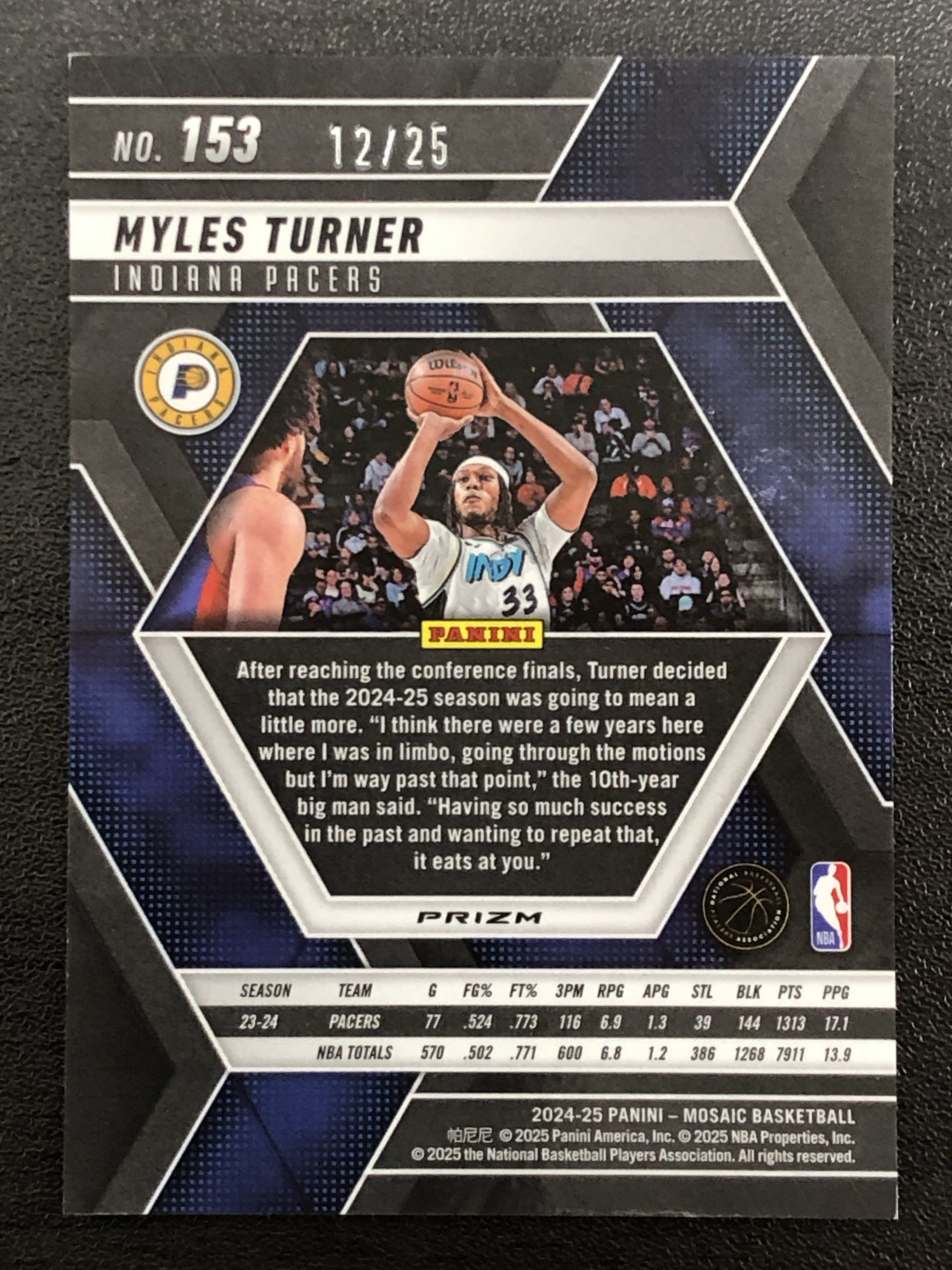2024-25 Panini Mosaic Myles Turner 马赛克系列 步行者 迈尔斯 特纳 白折 折射 /25编 带编 专收必备 卡品如图 -迪