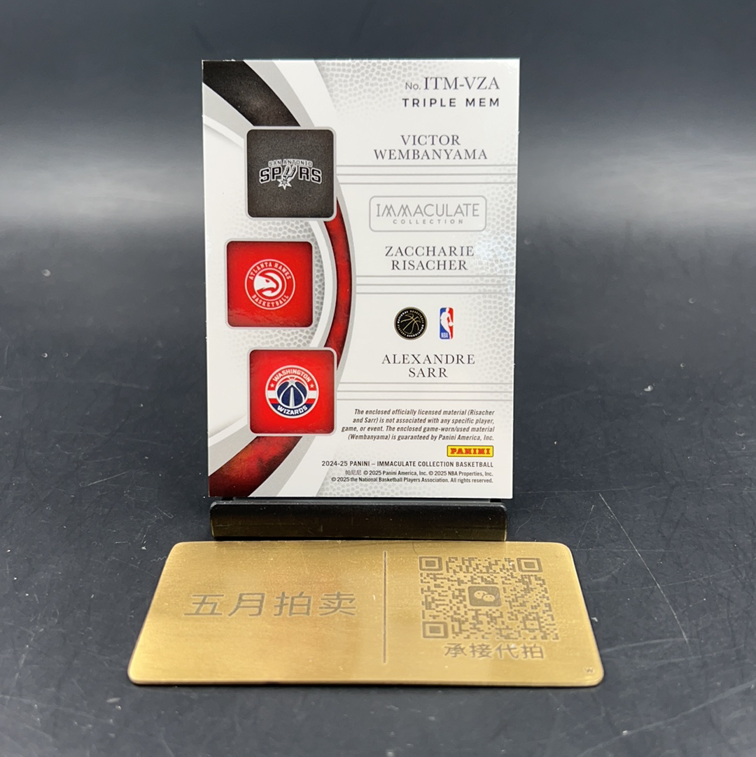 2024-25 Panini Immaculate Victor Wembanyama 【五月拍卖】维克托 文班亚马 斑马 扎卡里 里萨谢 亚历山大萨尔 三人切割物料亲穿 2/99编 微瑕呆雷总j8