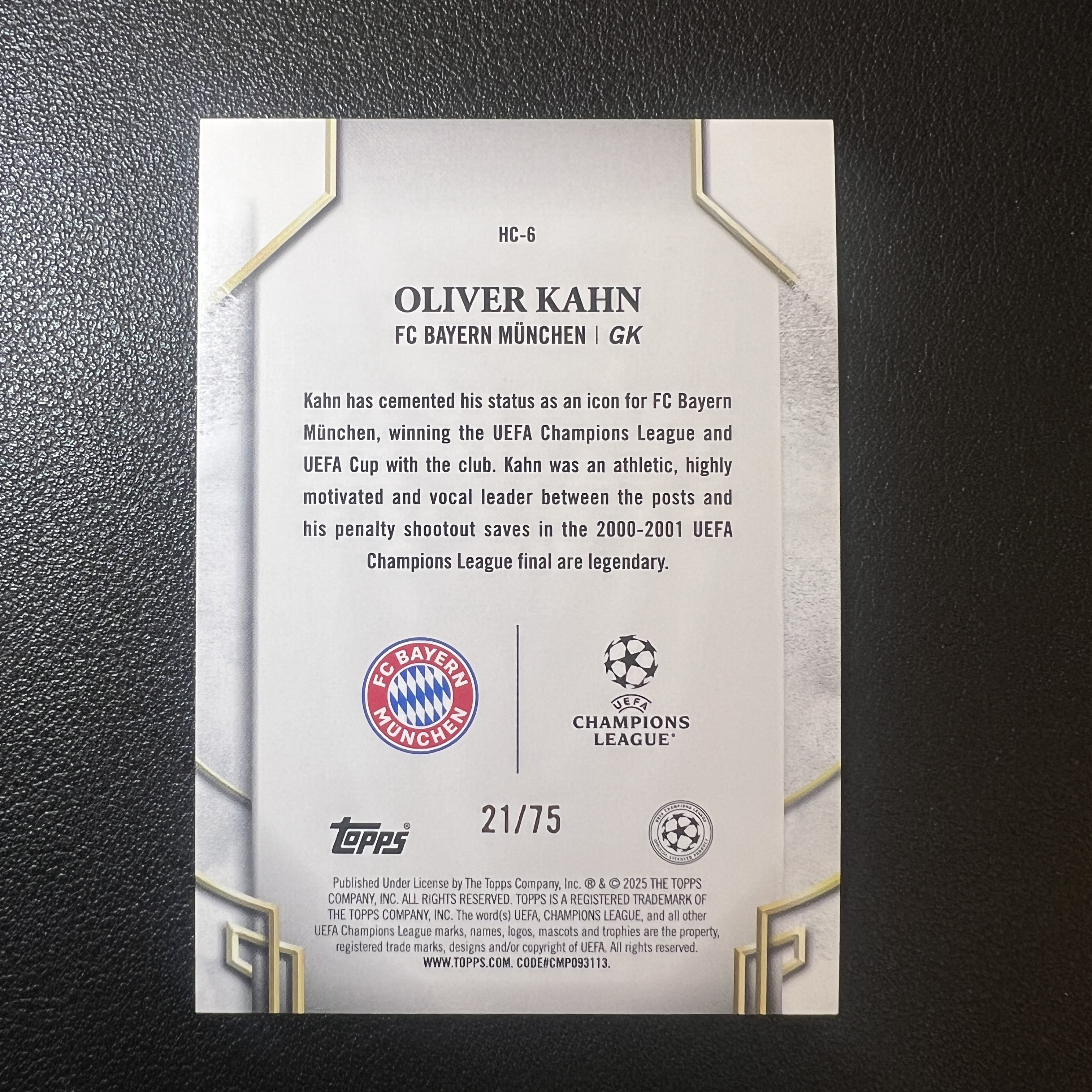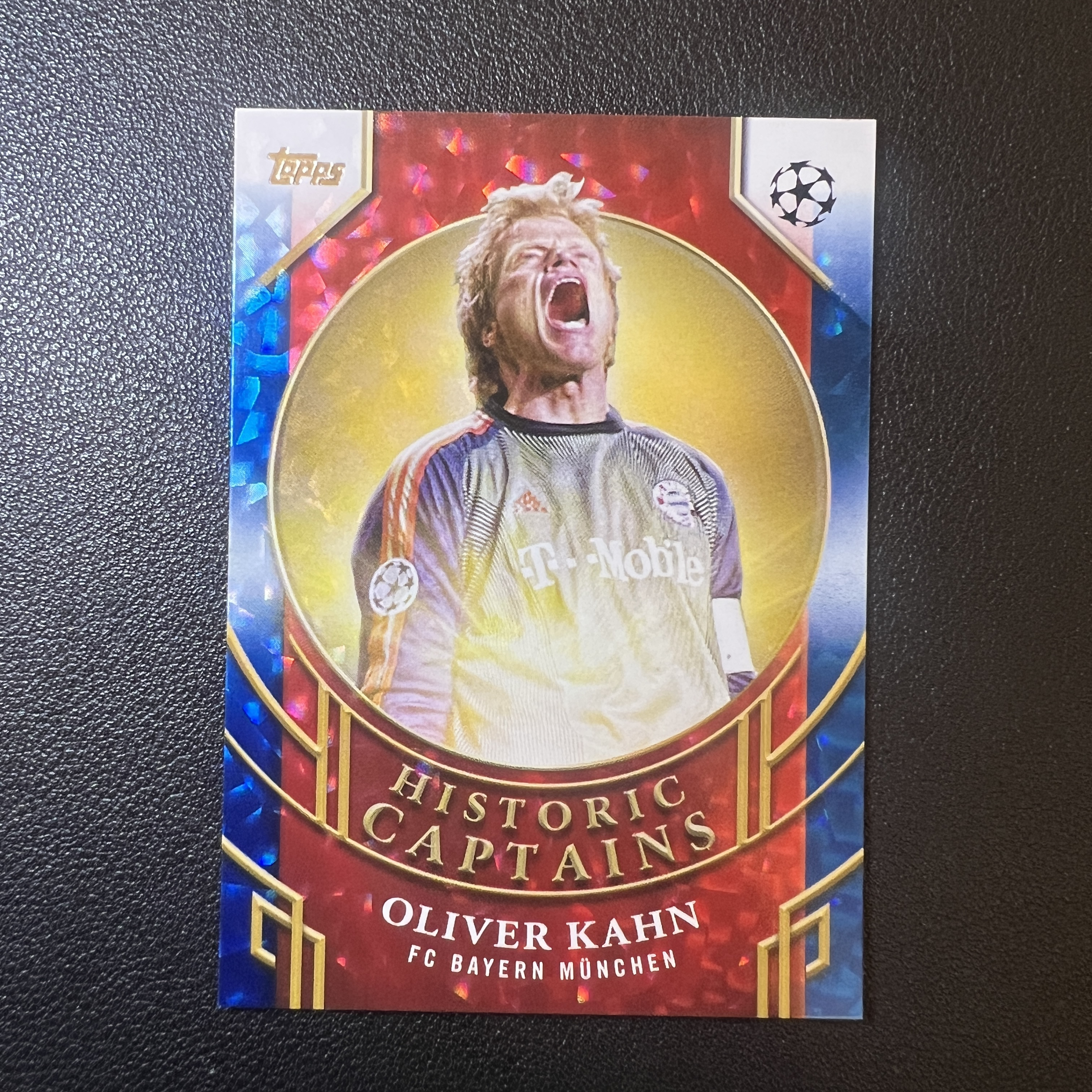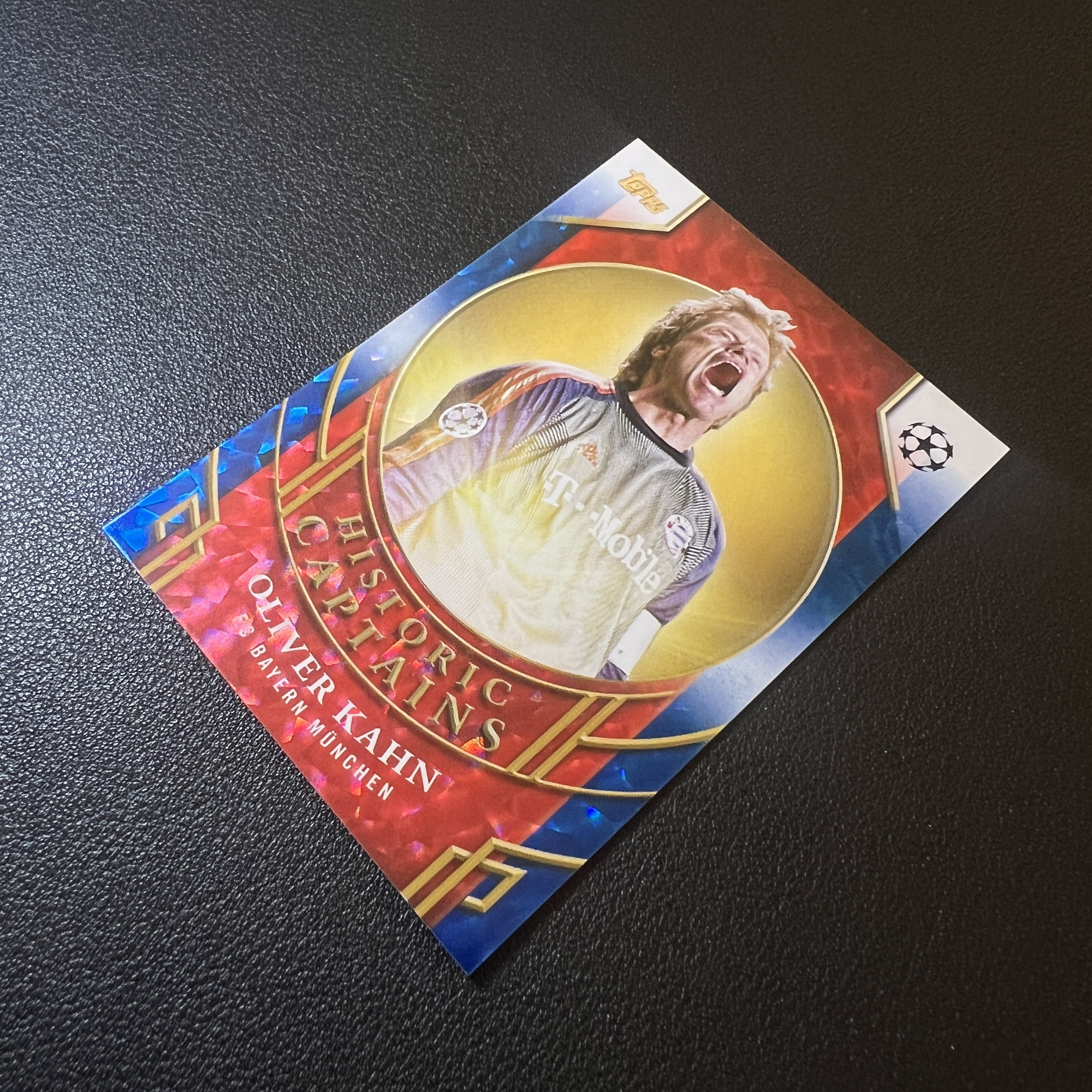 2025 Topps uefa Oliver Kahn 欧冠 UCC 拜仁 Historic Captains 功勋队长 蓝碎冰折 75编 奥利弗 卡恩 轻印-SY2095