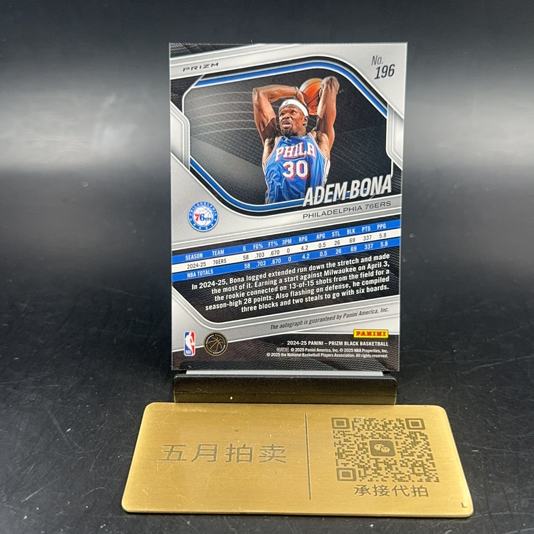 2024-25 Panini Prizm Adem Bona RC 【五月拍卖顺丰空运】pz black 新秀 博纳 76人 银折 签字 折射 卡品如图 呆雷总a271