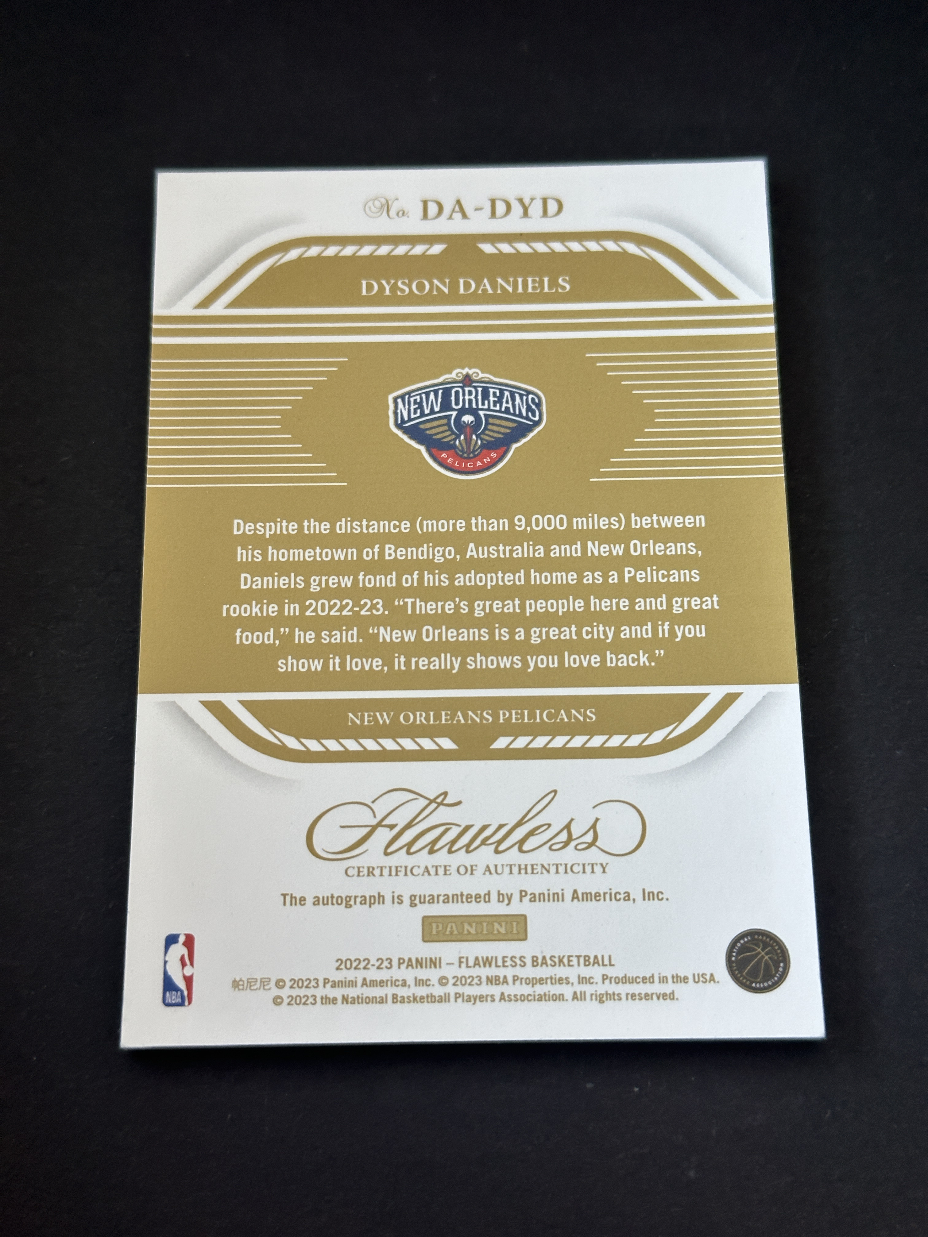 2022-23 Panini Flawless Dyson Daniels RC 新秀 鹈鹕 老鹰 戴森 丹尼尔斯 8编 签字 卡签 手提 老鹰防守组织核心 杨受伤以后场均14➕7➕8 抢断王卡品如图