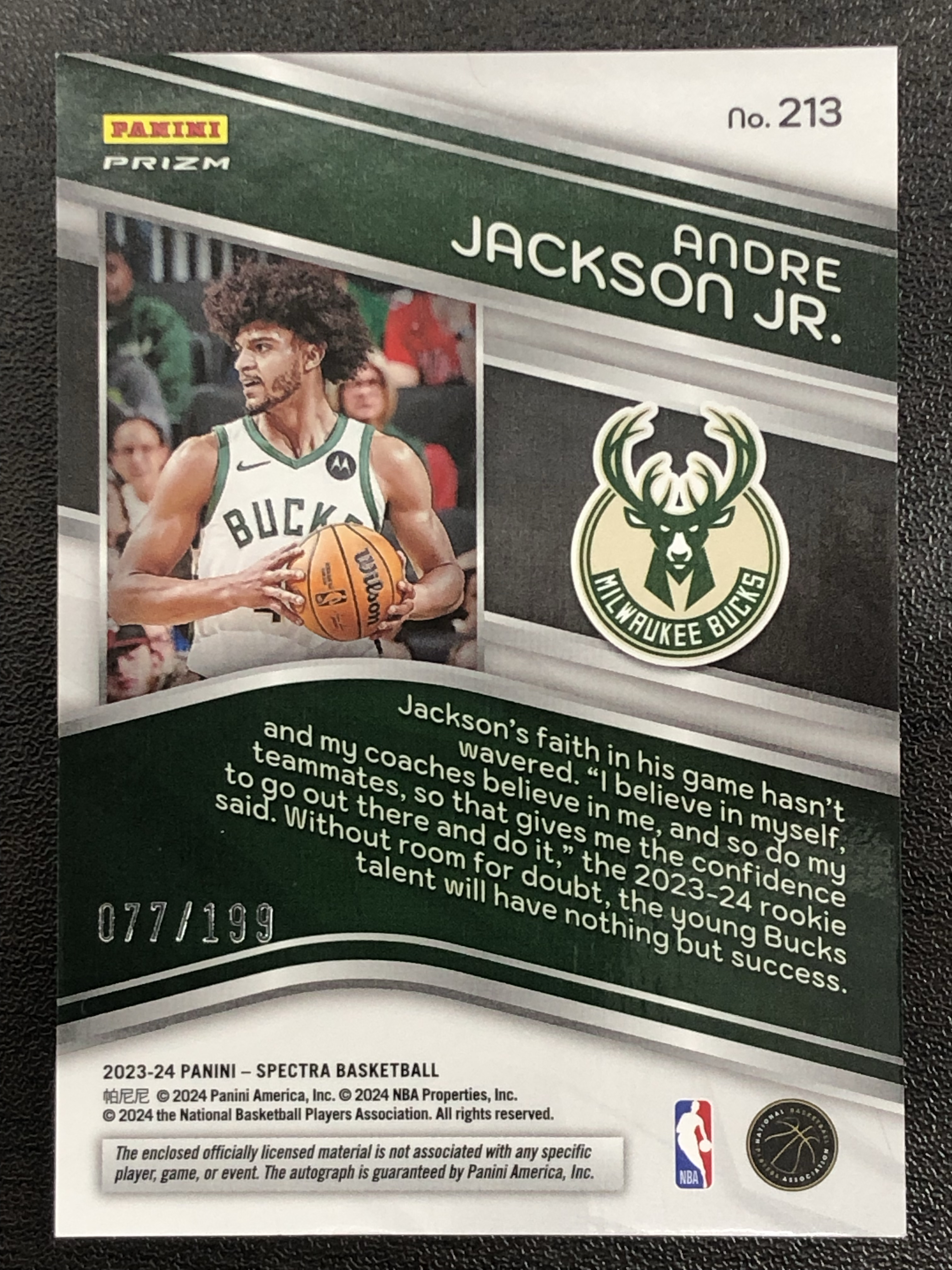 2023-24 Panini Spectra Andre Jackson Jr. RC 光谱系列 雄鹿 新秀 RC 小安德烈 杰克逊 签字 物料 RJA 银折 折射 199编 专收必备 卡品如图 -迪