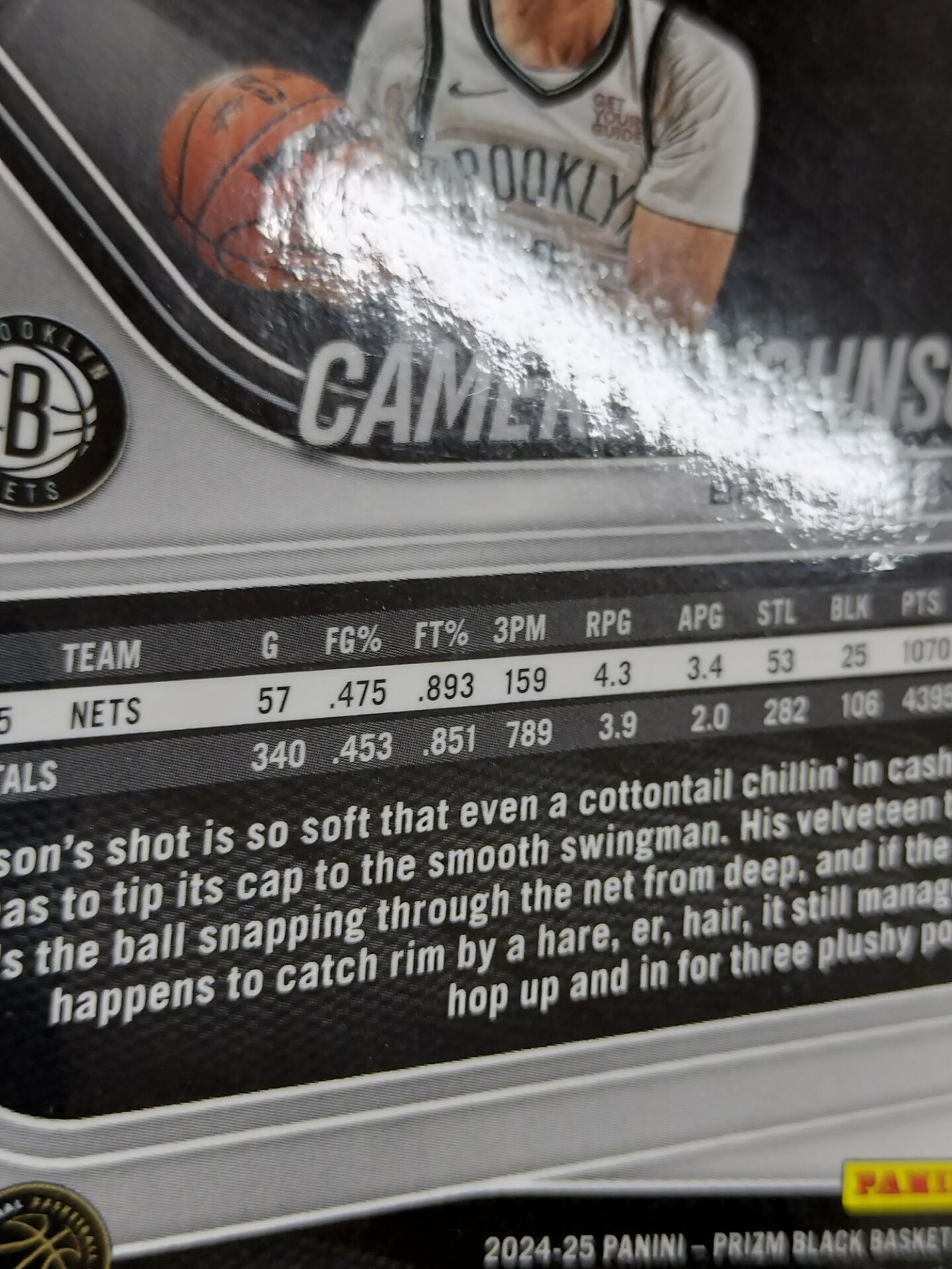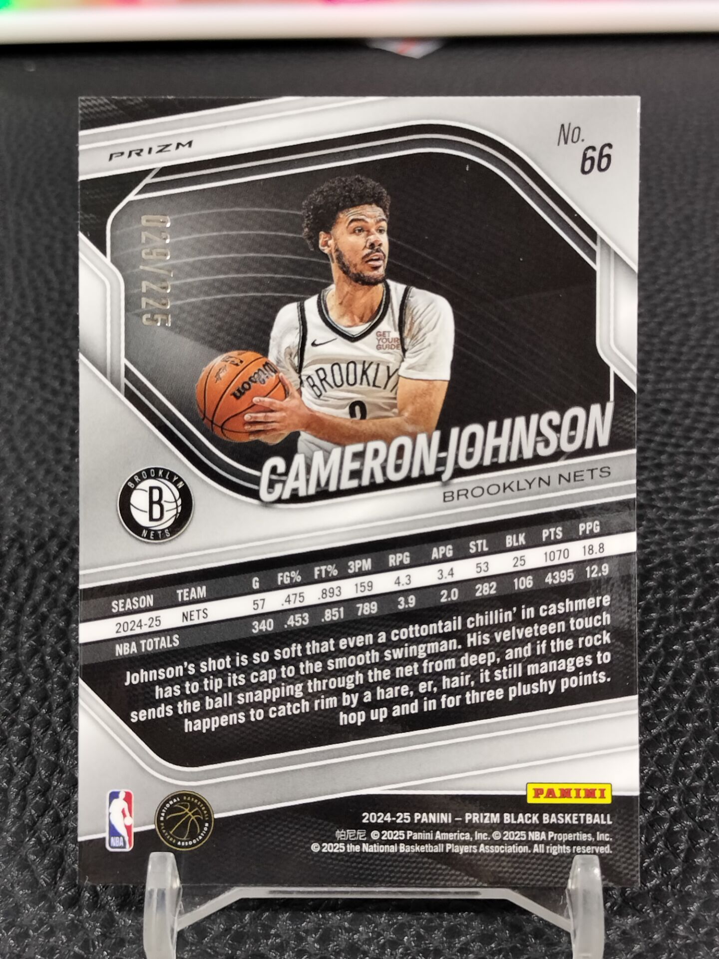 【浩行拍卖 截标预付82%】2024-25 Panini Prizm Black cameron johnson 篮网 卡梅伦 卡梅隆 约翰逊 球皮折 折射 29/225编 专收必备 瑕疵看图「树新」1112E05恁飛