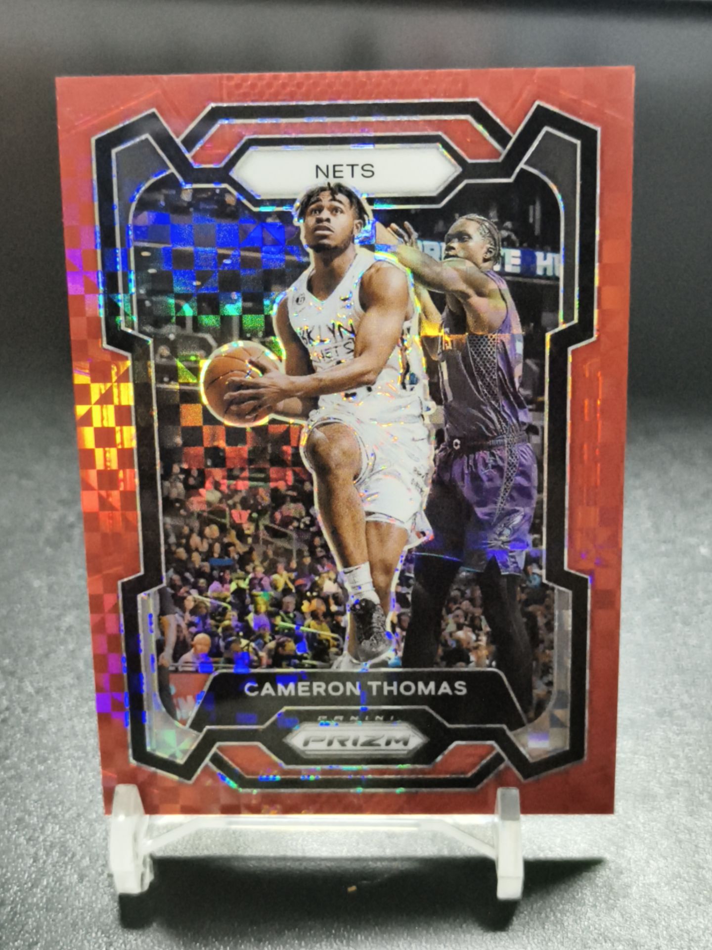 【浩行拍卖 截标预付82%】2023-24 panini prizm cameron thomas 篮网 卡梅隆 托马斯 红棋盘折 折射 26/75编 瑕疵看图 专收必备「树新」1112K01劉