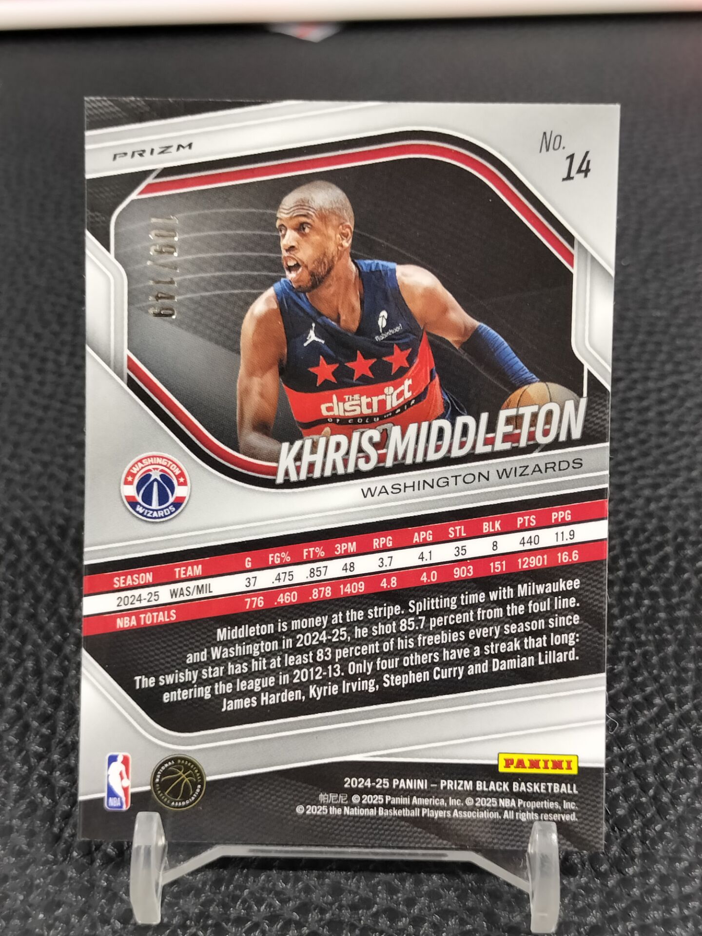 【浩行拍卖 截标预付82%】2024-25 panini prizm black khris middleton 奇才 克里斯 米德尔顿 紫碎冰 折射 109/149编 专收必备 瑕疵看图「树新」1112E05恁飛