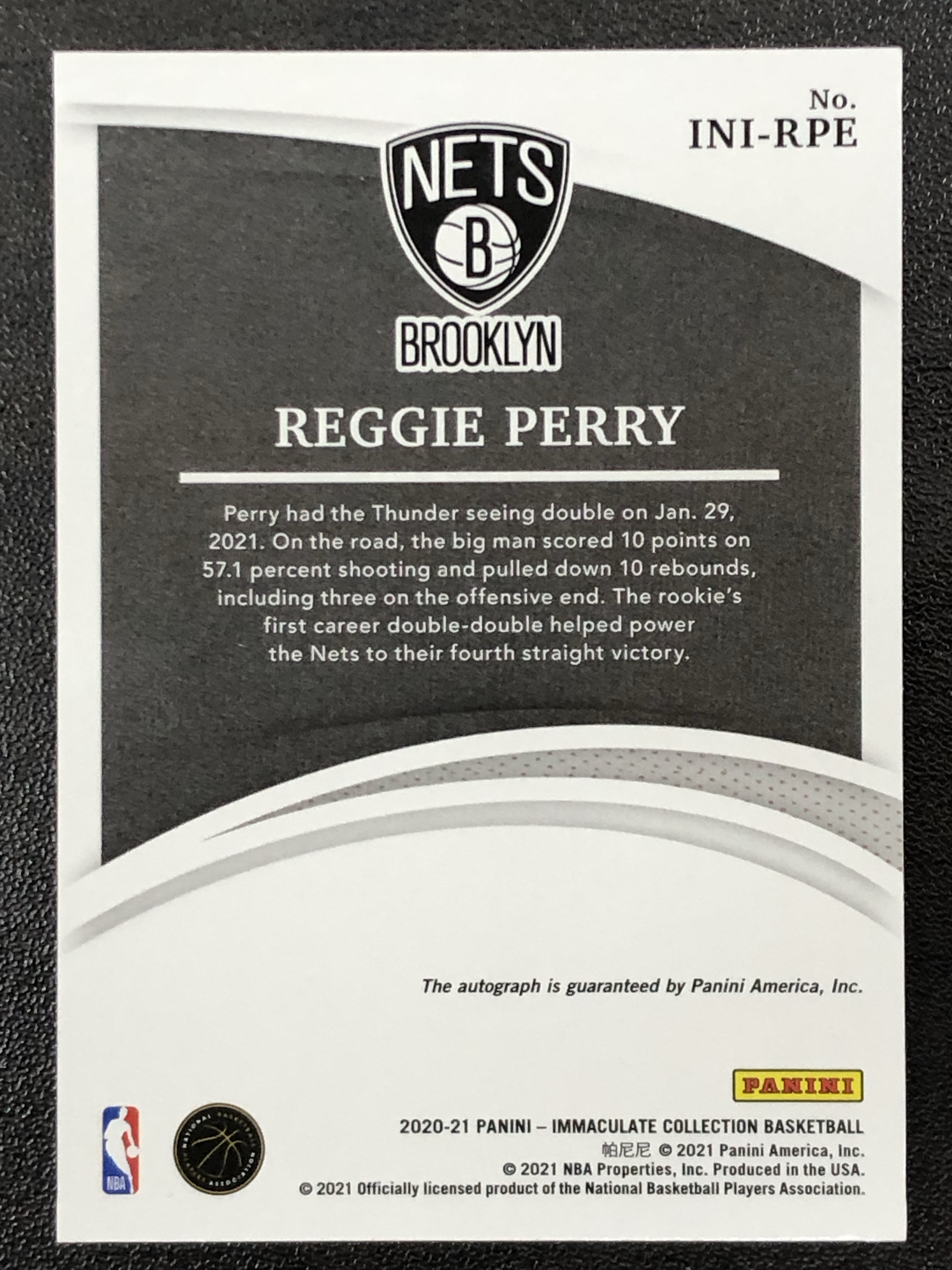 2020-21 Panini Immaculate Collection Reggie Perry RC 爱咪咪系列 篮网 新秀 RC 雷吉 佩里 金折 折射 10编 签字 专收必备 卡品如图-迪