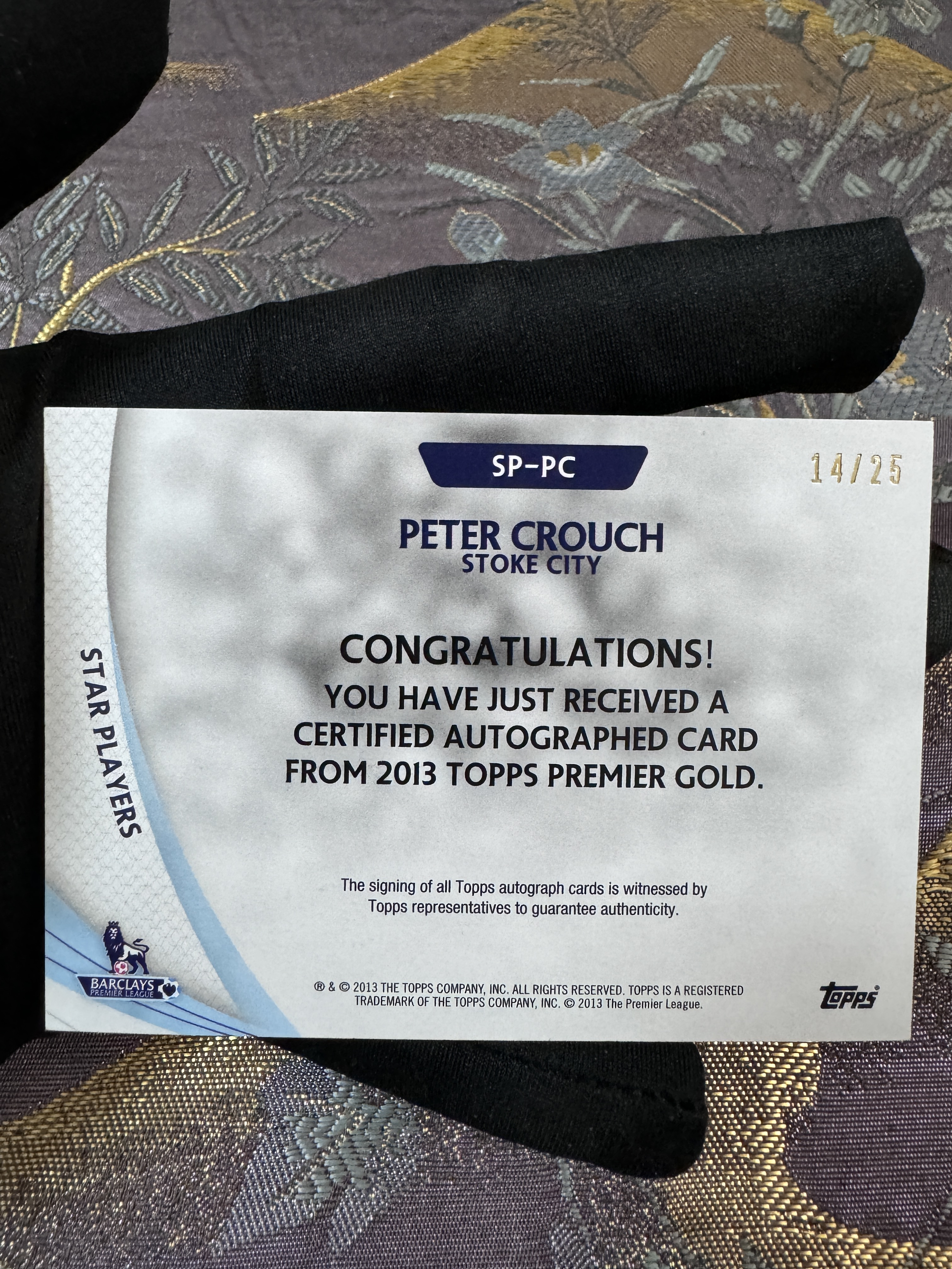2013 Topps Premier Gold Peter Crouch 英超 元年 斯托克城 利物浦 热刺 英格兰 超级巨星 克劳奇 投资大热 橙折签 14/25编 签字 稀有 完美墨迹 实卡精美